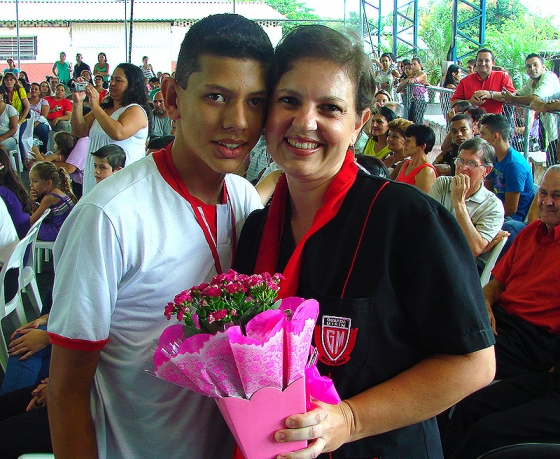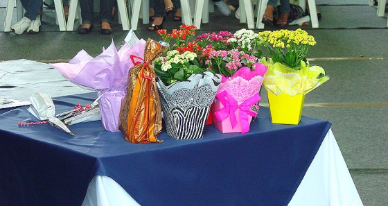 Os alunos que se destacaram em cada turma, foram chamados a frente e receberam uma homenagem e ainda cada uma das quatro turmas teve a oportunidade de homenagear seus mestres, com vasos de flores, buquês e rosas.