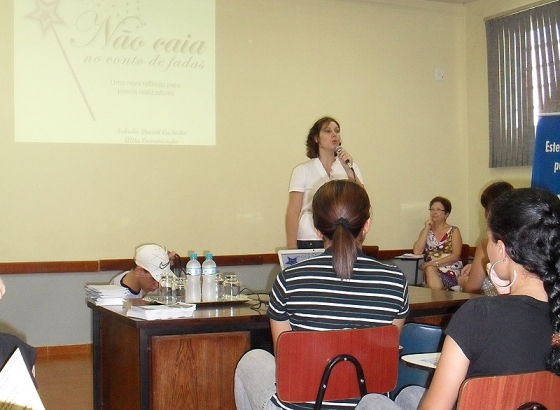 O tema da palestra - Não caia no conto de fadas- , foi ministrada por Fabiola Deiusti Custódio, de 37 anos, professora, palestrante e Bacharel em Comunicação Social com Habilitação em Publicidade e Propaganda,Web Designer com experiência desde 1997, Proprietária da agência ALLTA Comunicação que entre outros trabalhos é responsável pelo desenvolvimento do portal www.visiterioclaro.com.br.