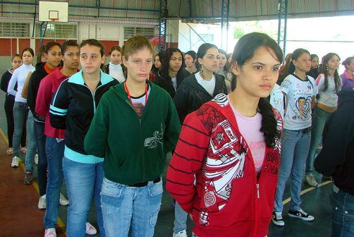 O ensaio está reunindo 600 adolescentes orientados por Policiais Militares que os instruem quanto à marcha e postura.