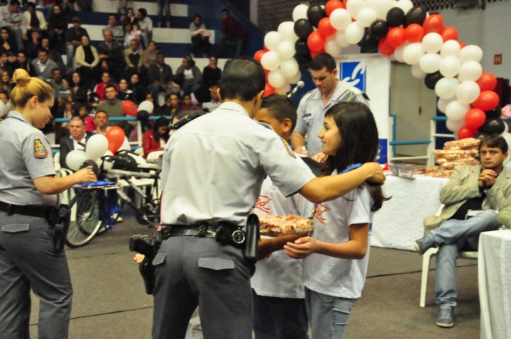 Durante o evento as crianças fizeram apresentações dos trabalhos realizados em sala de aula, receberam premiações e o certificado de conclusão, e fizeram também o juramento perante todos que irão se manter longe das drogas e não praticarão a violência.