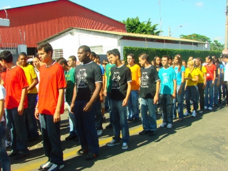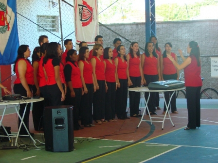 Os adolescentes foram recebidos com café da manhã e posteriormente encaminhados a Quadra Poliesportiva para a abertura da Solenidade realizada pelo Administrador Rinaldo. Cada representante das Instituições participantes hastearam as Bandeiras, enquanto executávamos o Hino Nacional e do Município com a participação especial do Coral Encanto Jovem – Guarda Mirim de Rio Claro. Para saudar os participantes o Coral apresentou a musica Happy Day ministrada pela regente Graziele Tinós.