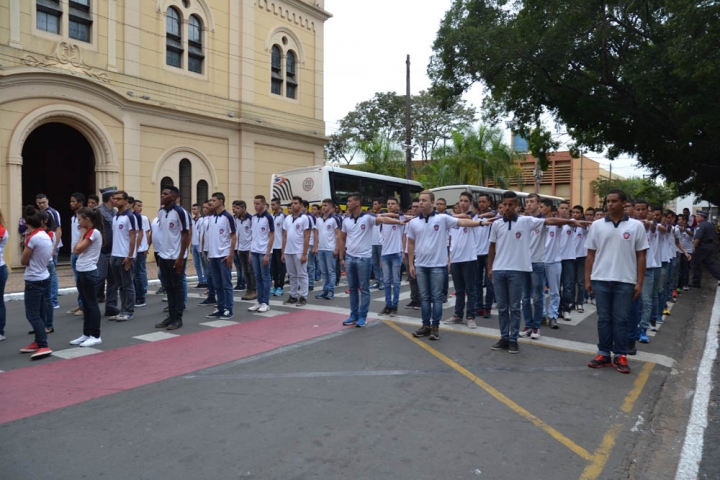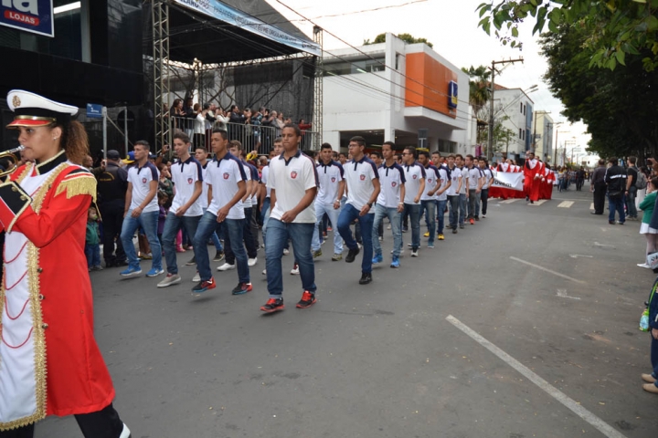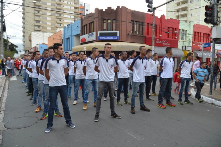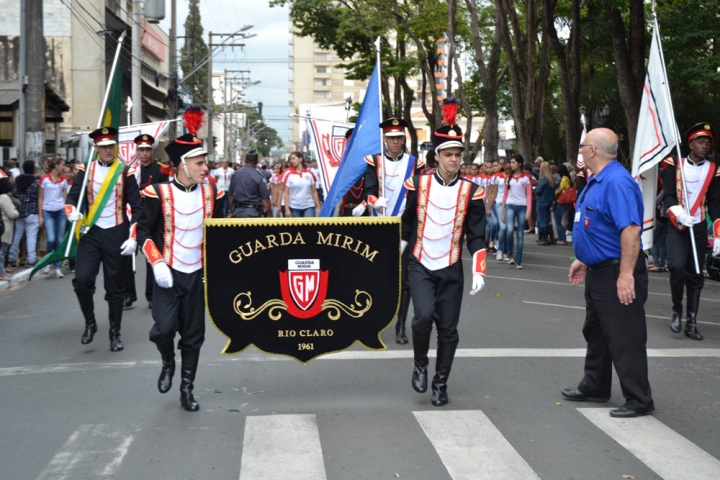 A Guarda Mirim, que faz parte das entidades que defilam todo ano, participou com grande destaque sob os olhares atentos dos espectadores munícipes e visitantes da cidade que compareceram no Jardim Público.