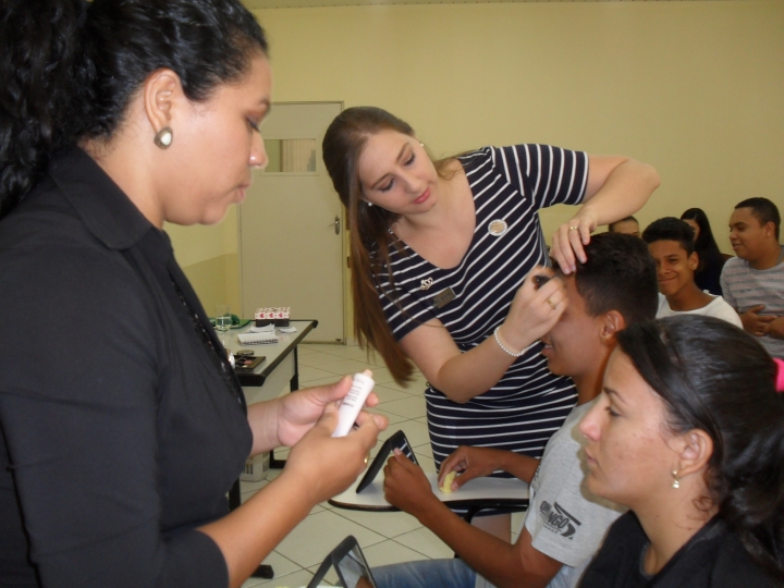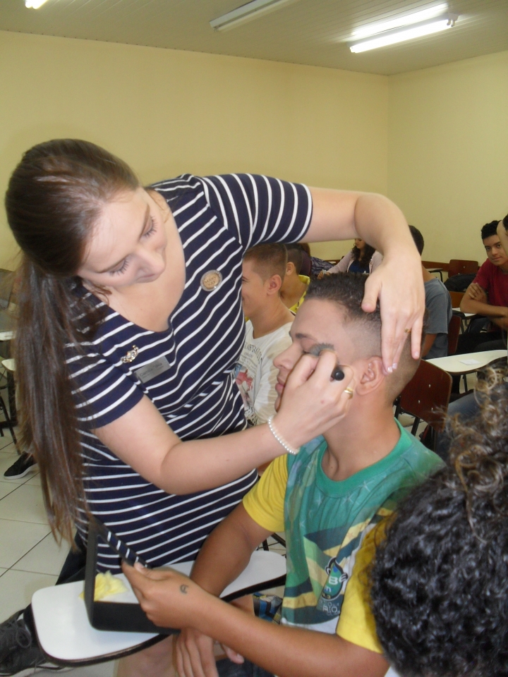 Por fim houve uma demonstração de maquiagem para as meninas e cuidados com a pele masculina.