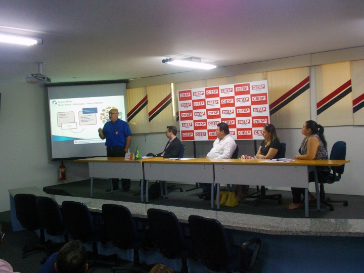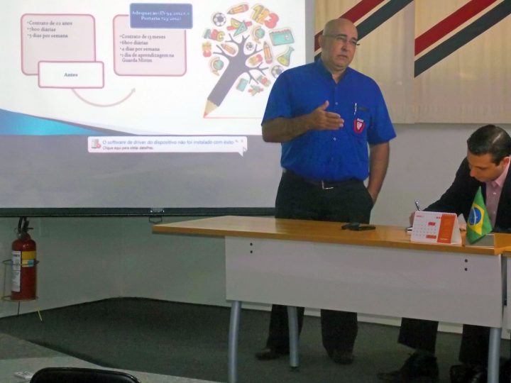 Durante a apresentação o Sr. Rinaldo Baptista apresentou as novas regras do ministério do trabalho para contratação dos aprendizes, em especial os novos horários e a duração do contrato.