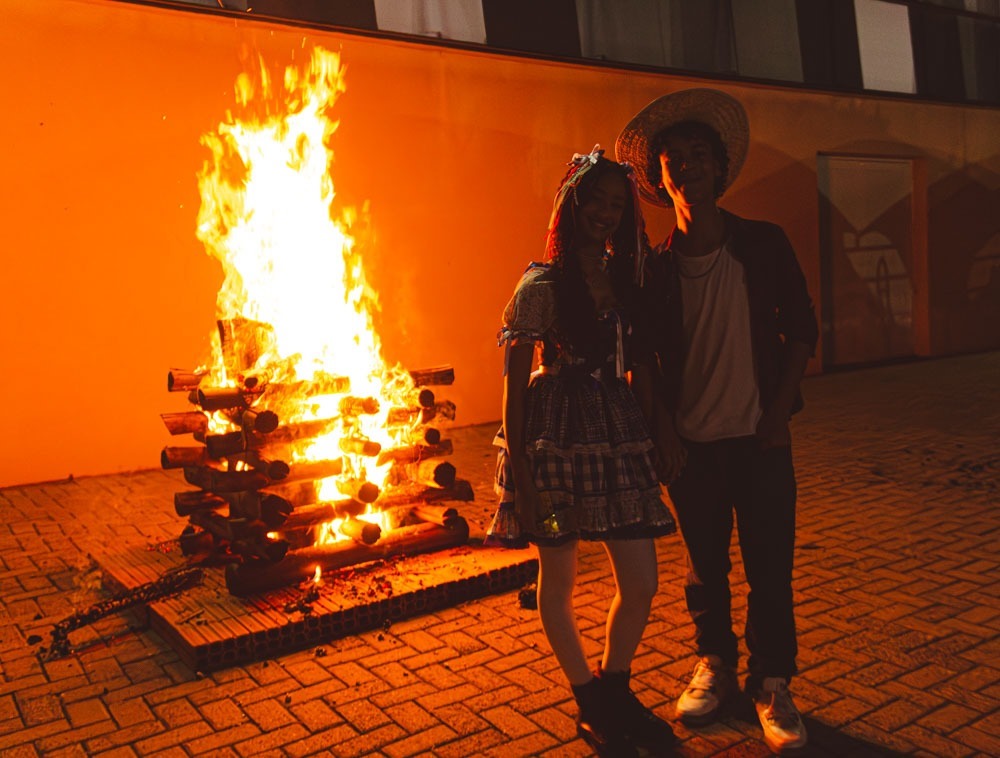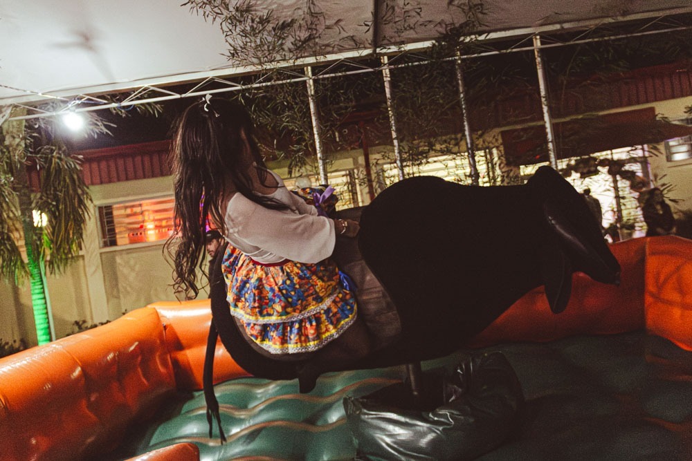 A programação foi cuidadosamente preparada para encantar o público do início ao fim. Um dos grandes destaques da noite foi o touro mecânico, que desafiou a habilidade dos participantes e garantiu momentos de pura diversão e risadas. A tradicional fogueira trouxe o charme e o calor típicos dessa época do ano, contribuindo para o clima acolhedor do evento. As barraquinhas temáticas, decoradas com cores vibrantes, ofereceram uma variedade de comidas típicas que agradaram a todos os paladares.