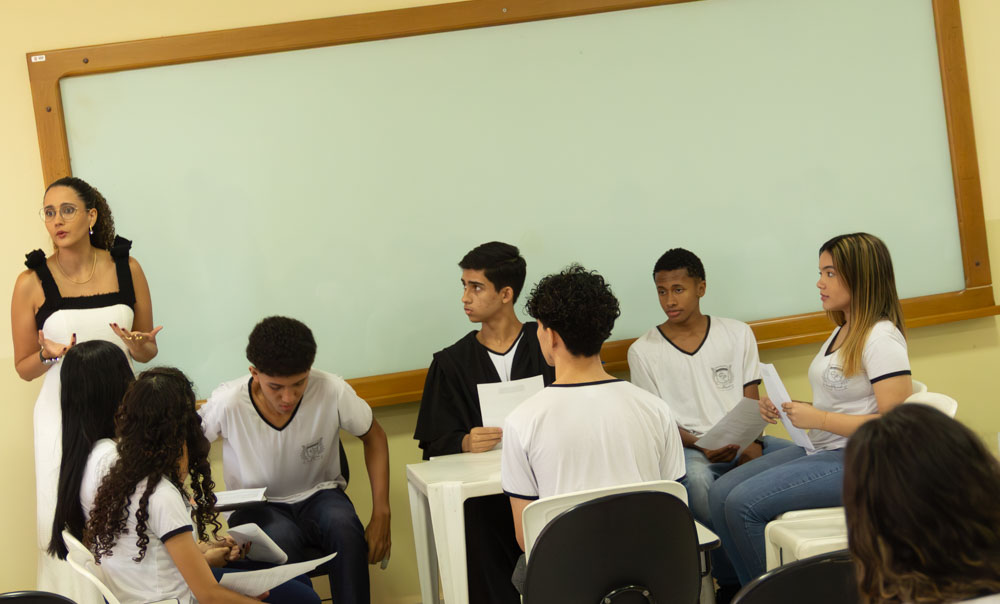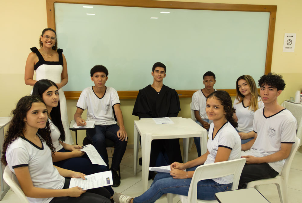 Durante a visita, a Juíza também realizou e monitorou uma audiência simulada com os adolescentes da Instituição. A atividade proporcionou aos jovens uma vivência prática sobre o funcionamento da Justiça do Trabalho, despertando reflexões sobre direitos, deveres e oportunidades de aprendizagem profissional.