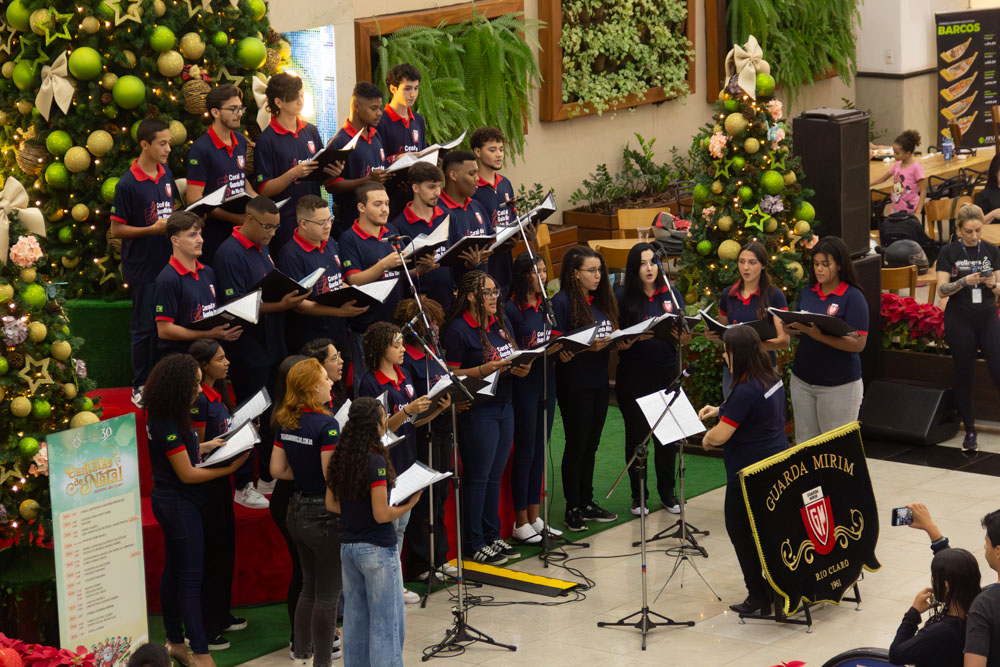 O Coral da Guarda Mirim de Rio Claro realizou, no dia 18 de dezembro, uma apresentação especial de Natal na Praça de Alimentação do Shopping Rio Claro. O evento proporcionou ao público um momento de celebração, encantamento e confraternização, por meio da música e do espírito natalino.