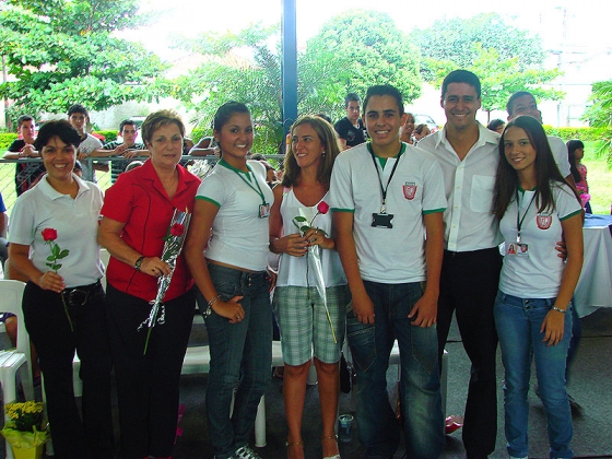 Os alunos que se destacaram em cada turma, foram chamados a frente e receberam uma homenagem e ainda cada uma das quatro turmas teve a oportunidade de homenagear seus mestres, com vasos de flores, buquês e rosas.