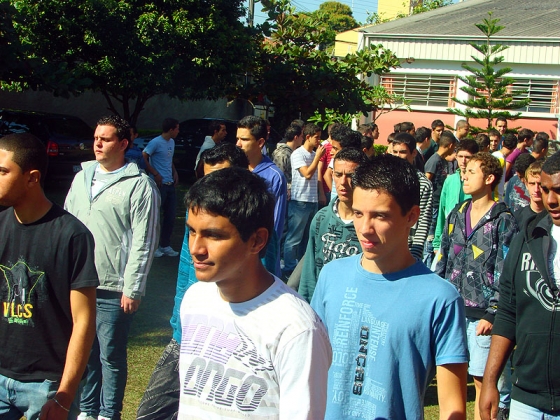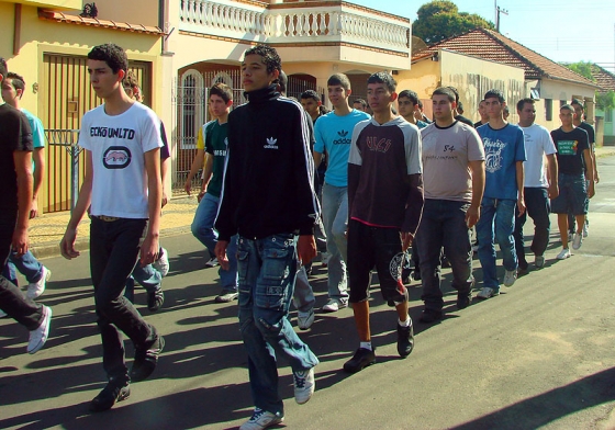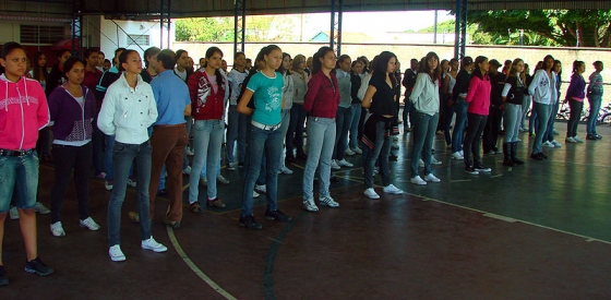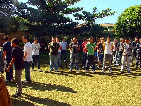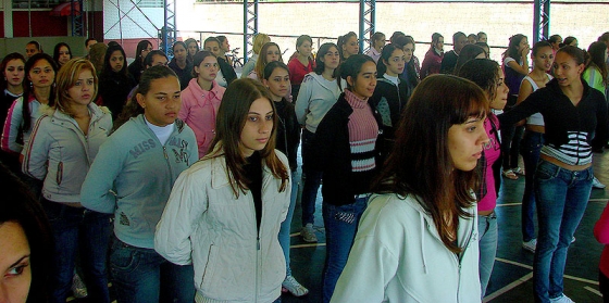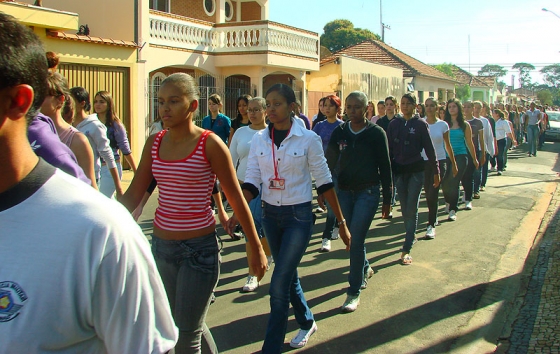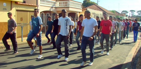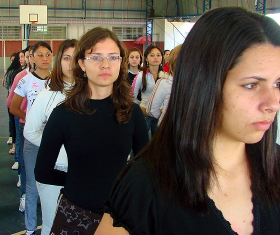 O ensaio está reunindo 600 adolescentes orientados por Policiais Militares que os instruem quanto à marcha e postura.