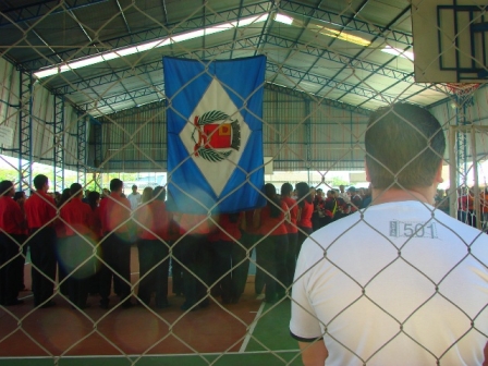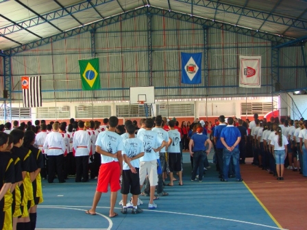 Os adolescentes foram recebidos com café da manhã e posteriormente encaminhados a Quadra Poliesportiva para a abertura da Solenidade realizada pelo Administrador Rinaldo. Cada representante das Instituições participantes hastearam as Bandeiras, enquanto executávamos o Hino Nacional e do Município com a participação especial do Coral Encanto Jovem – Guarda Mirim de Rio Claro. Para saudar os participantes o Coral apresentou a musica Happy Day ministrada pela regente Graziele Tinós.