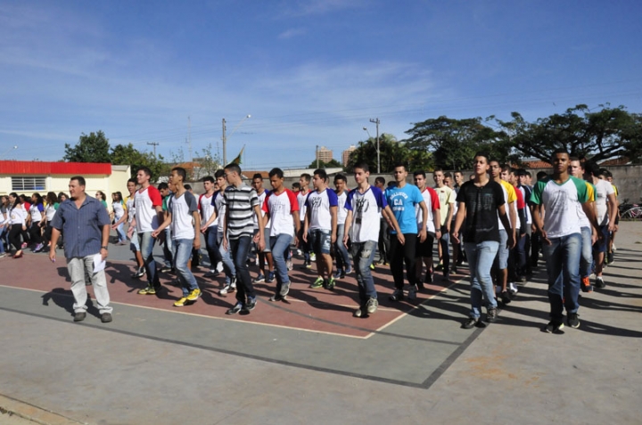 Os ensaios são realizados aos sábados, e estão reunindo cerca de 600 adolescentes, que são orientados por Policiais Militares que os instruem quanto à marcha e postura.