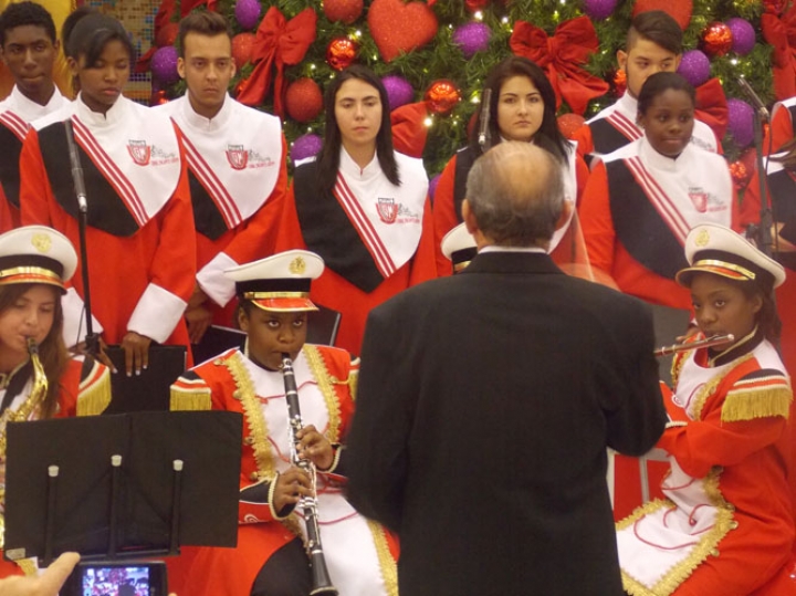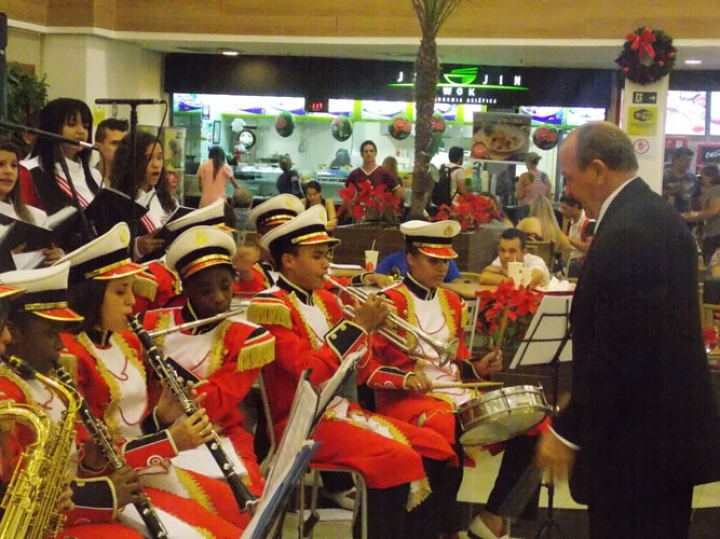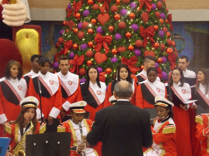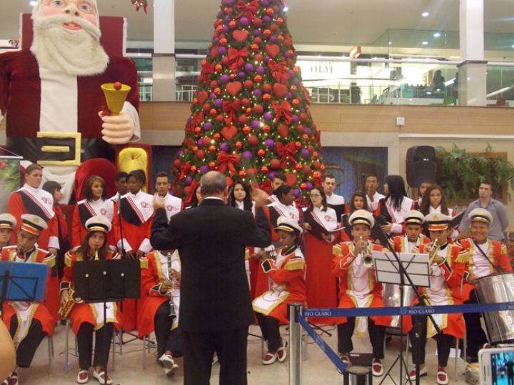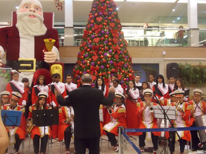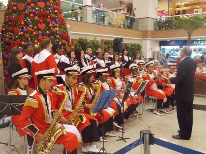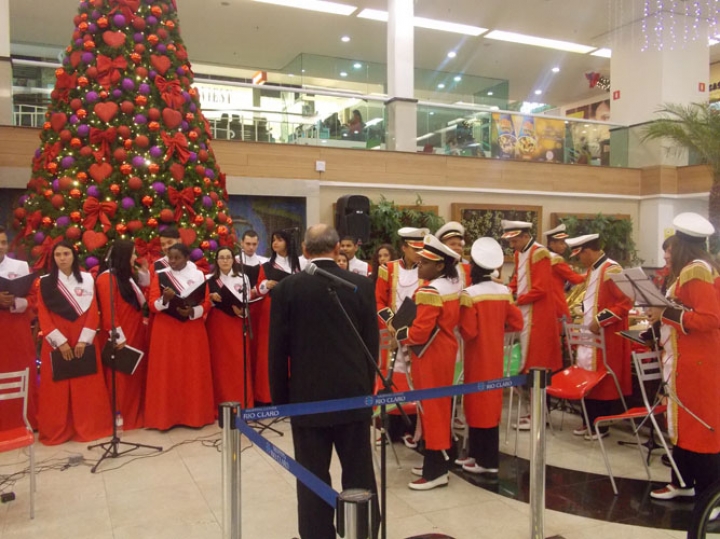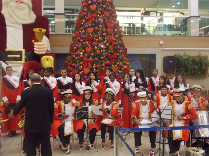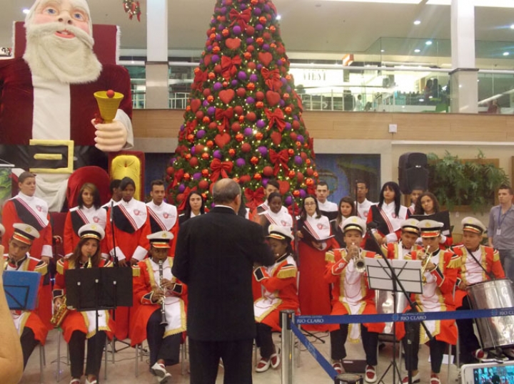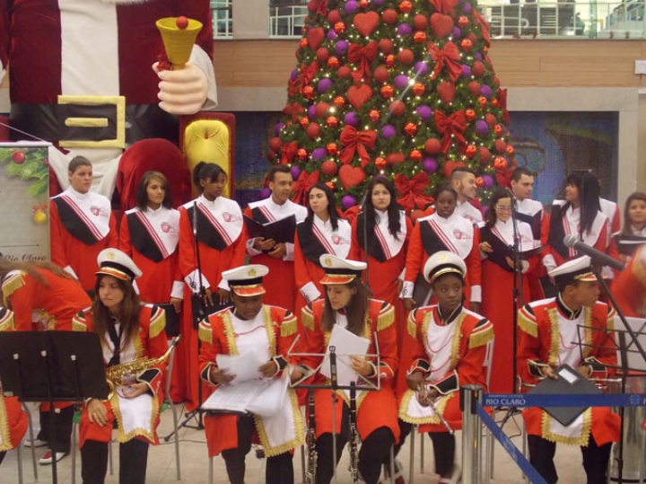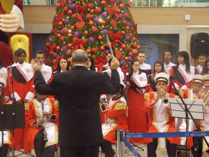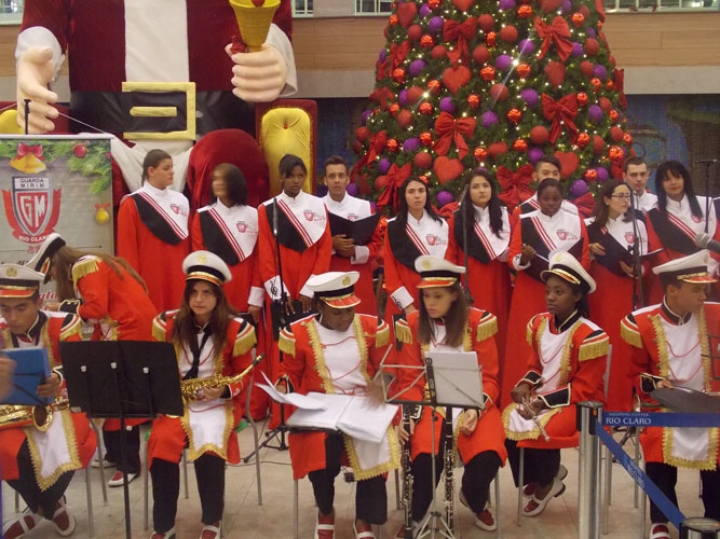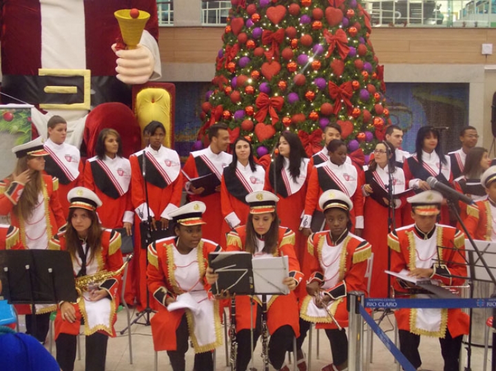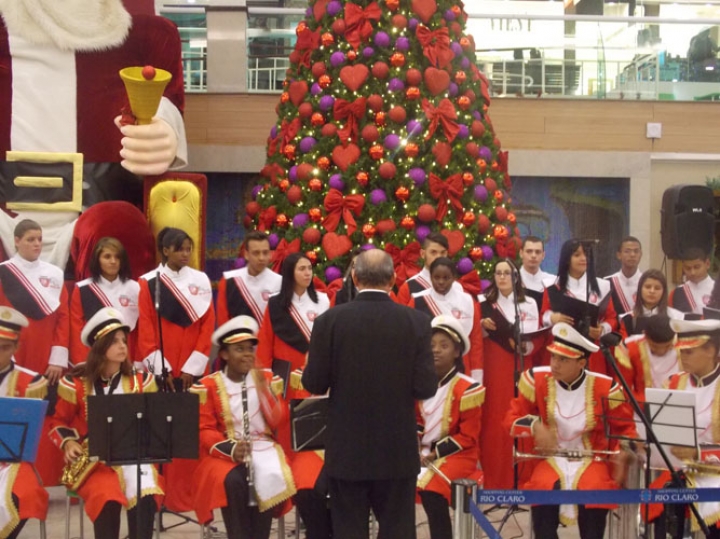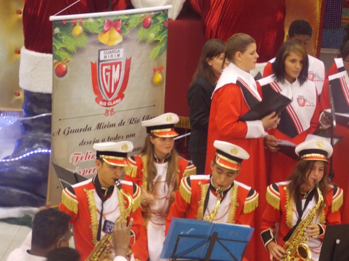 A Banda e o Coral Encanto Jovem da Guarda Mirim fizeram uma apresentação especial nesta última segunda-feira, dia 15, no Shopping Center Rio Claro, em comemoração às festas de fim de ano.