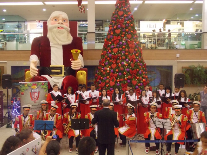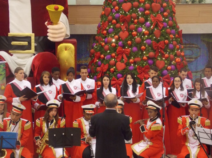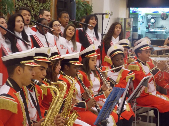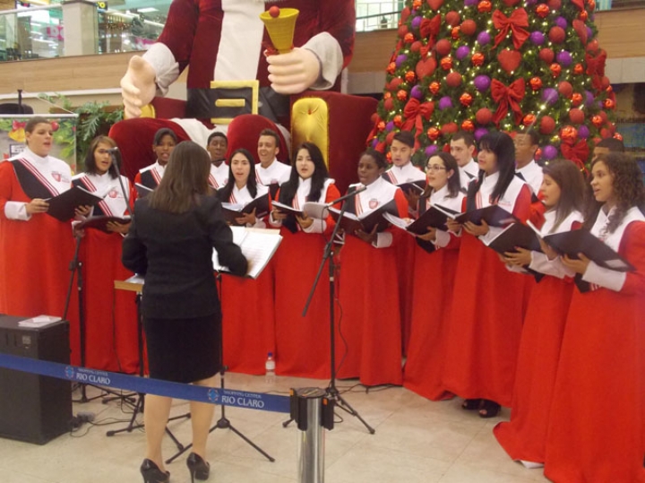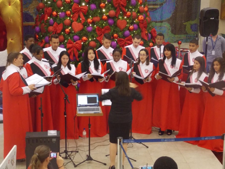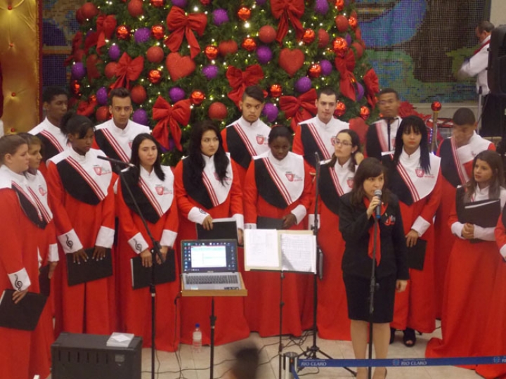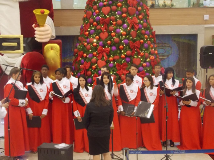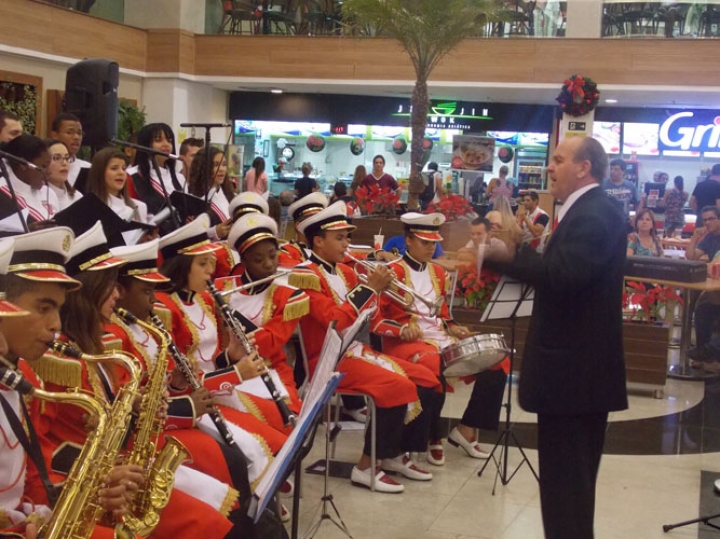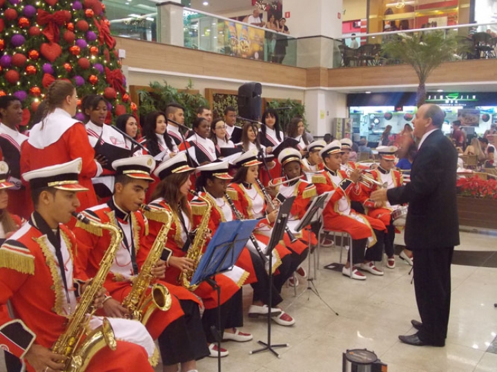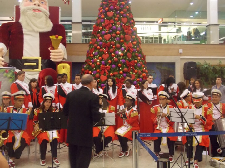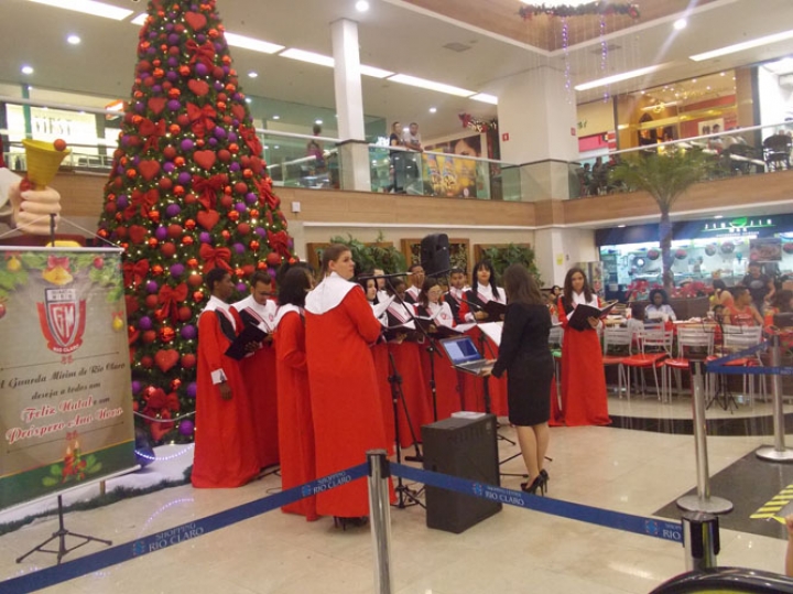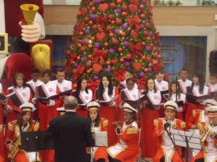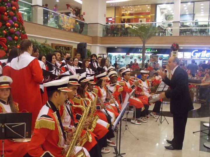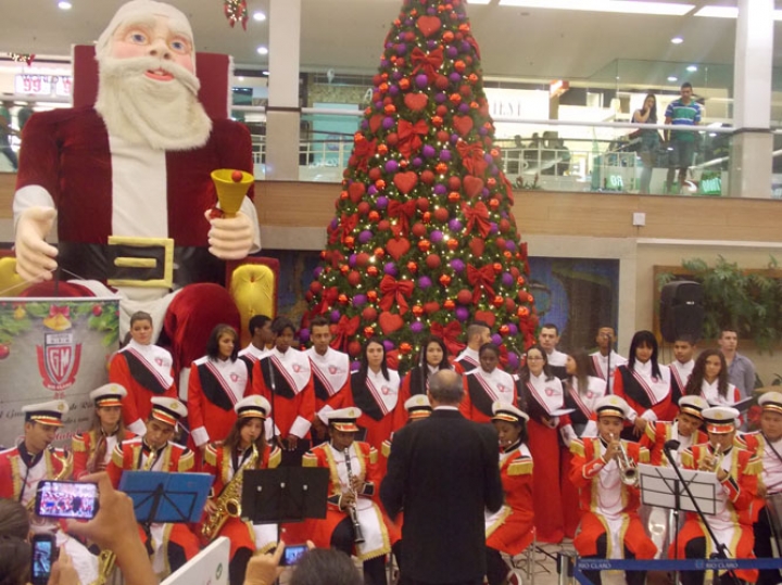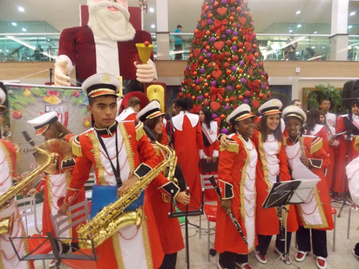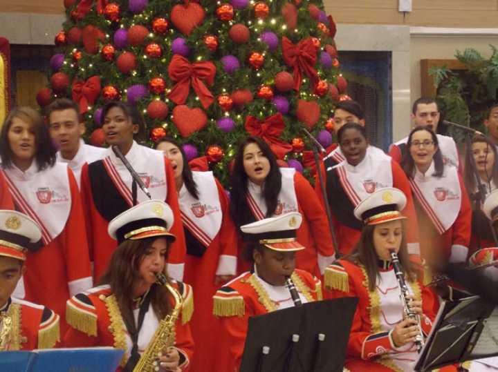 A Banda e o Coral Encanto Jovem da Guarda Mirim fizeram uma apresentação especial nesta última segunda-feira, dia 15, no Shopping Center Rio Claro, em comemoração às festas de fim de ano.