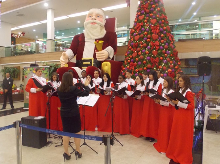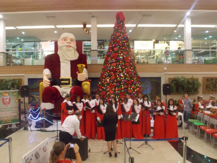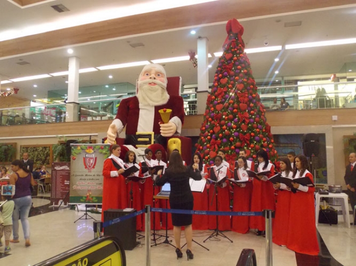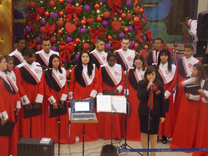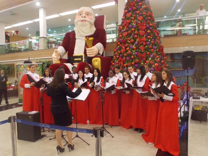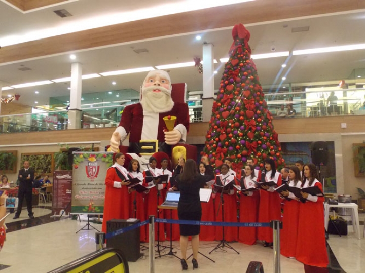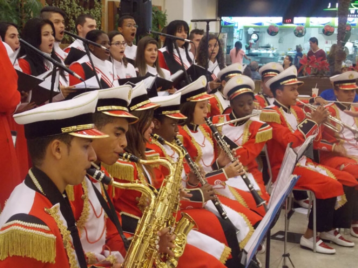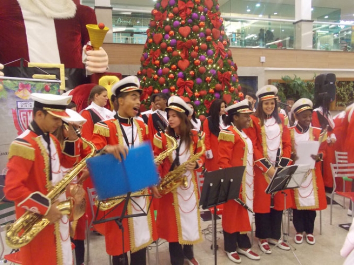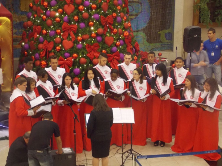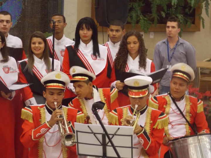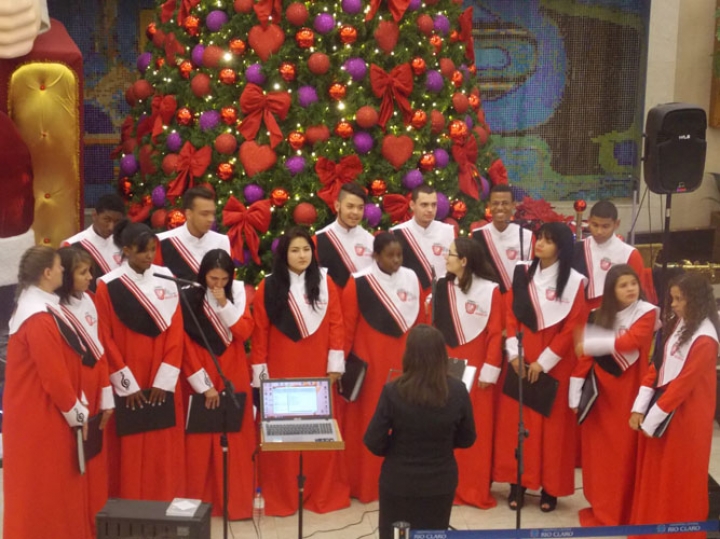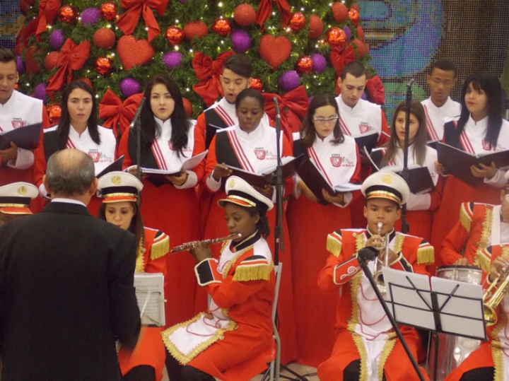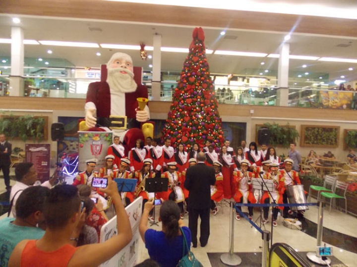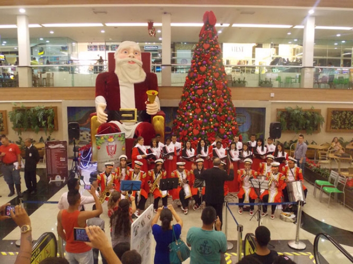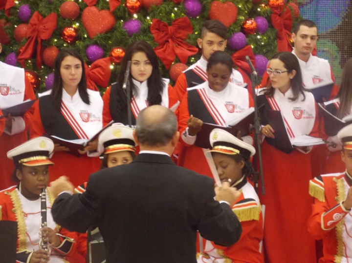 A Banda e o Coral Encanto Jovem da Guarda Mirim fizeram uma apresentação especial nesta última segunda-feira, dia 15, no Shopping Center Rio Claro, em comemoração às festas de fim de ano.