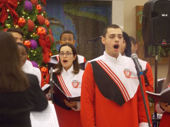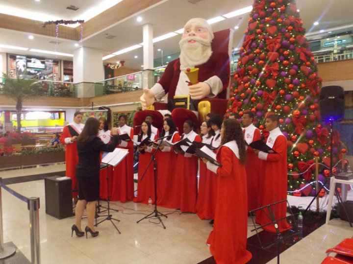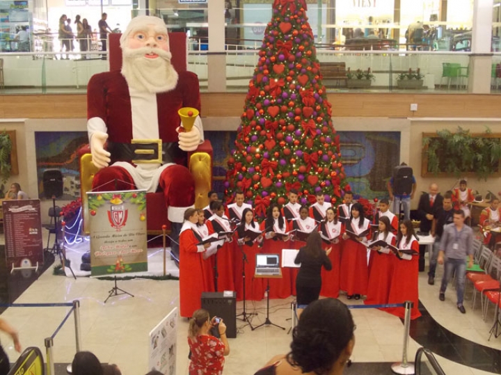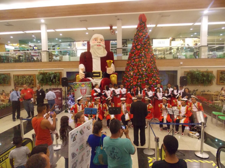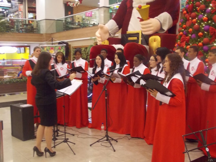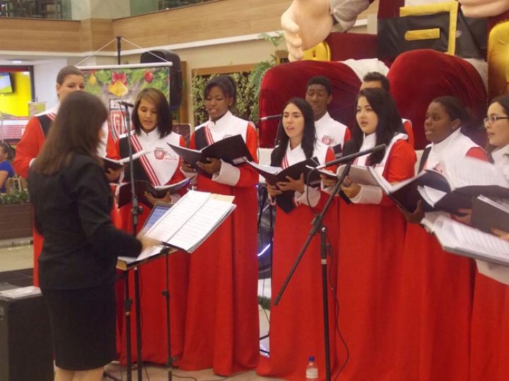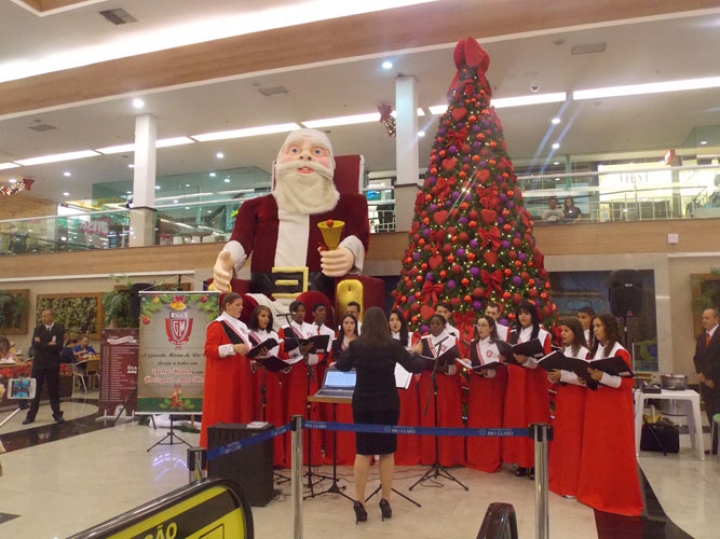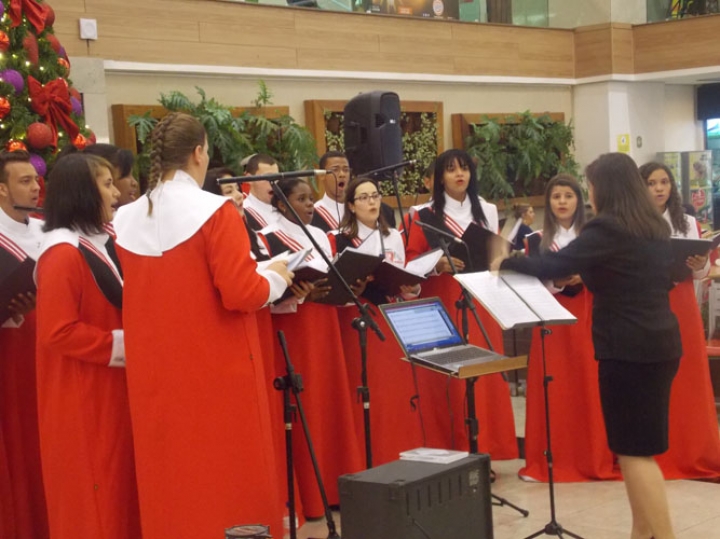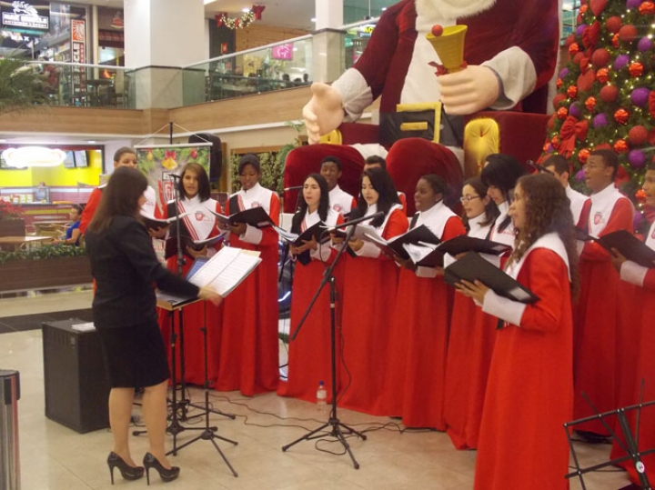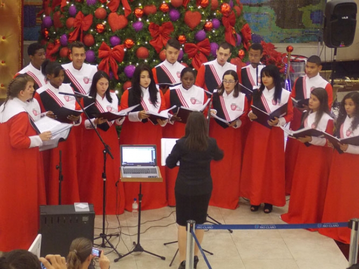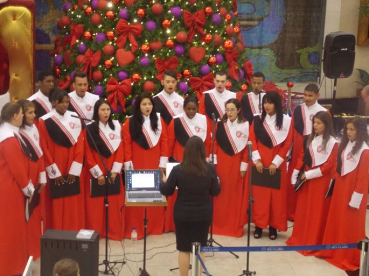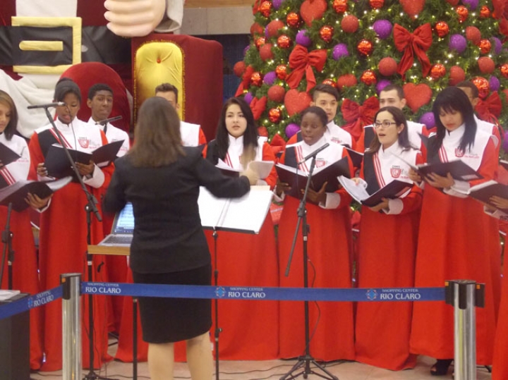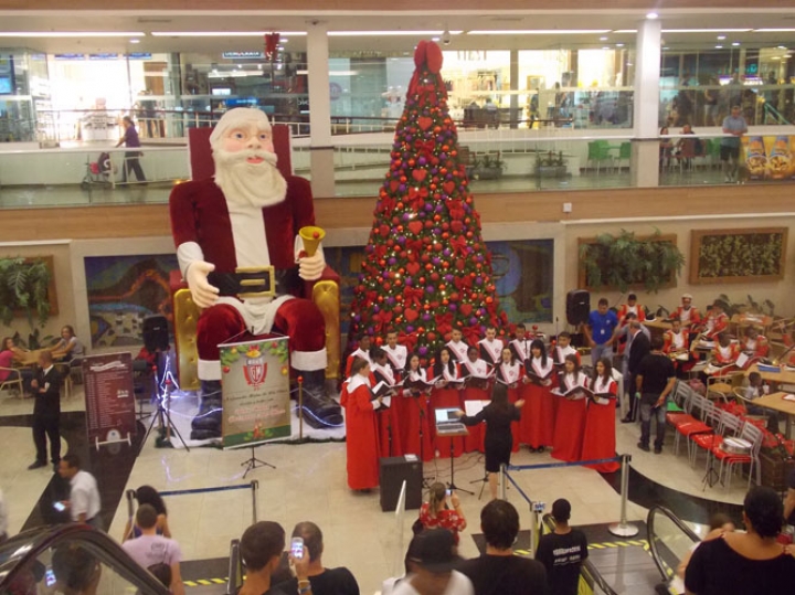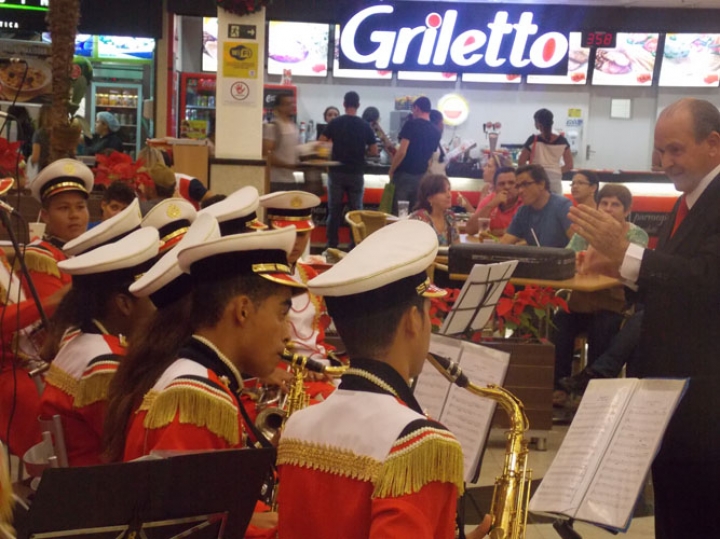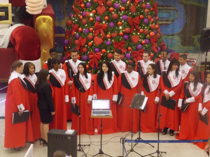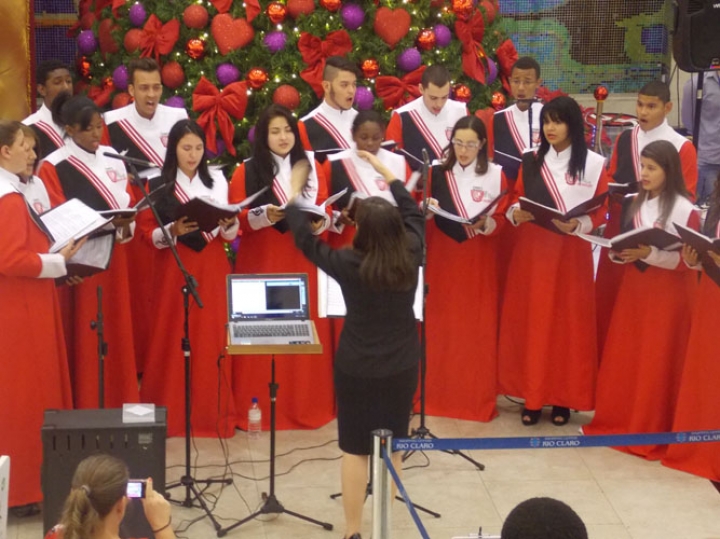 A Banda e o Coral Encanto Jovem da Guarda Mirim fizeram uma apresentação especial nesta última segunda-feira, dia 15, no Shopping Center Rio Claro, em comemoração às festas de fim de ano.