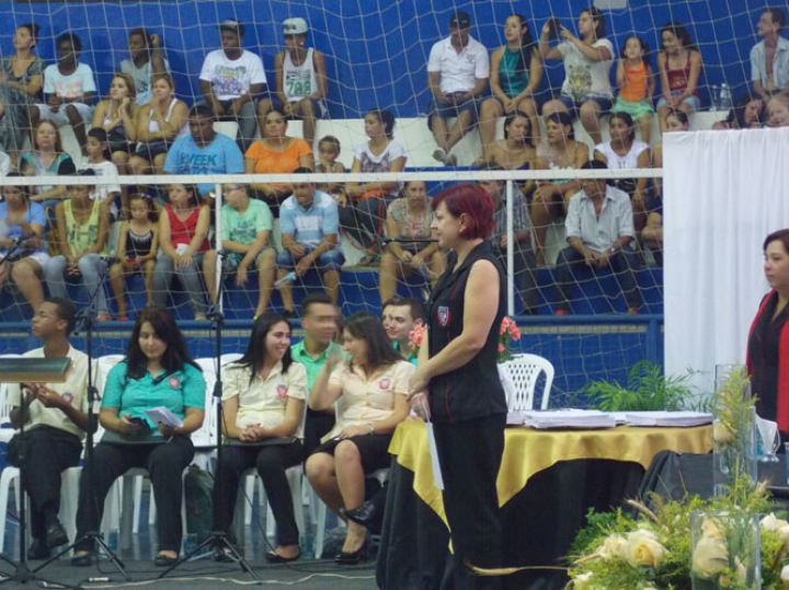 Ainda sobre o curso, discursou a Orientadora Educacional da Entidade Sra. Gisele Dias; além de algumas das autoridades, como o Excelentíssimo Sr. Palmínio Altimari, prefeito municipal de Rio Claro.