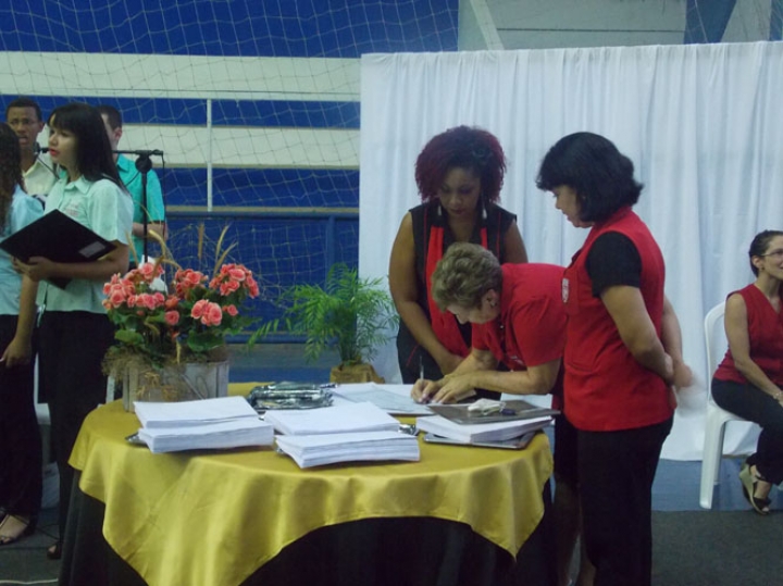 A formatura se iniciou às 17h00, com o Mestre do Cerimonial o Administrador da Instituição o Senhor Rinaldo Ap. Baptista, fazendo a abertura do evento com uma breve explanação para anunciar a apresentação do Coral Encanto Jovem, a fim de receber e dar as boas vindas aos familiares e autoridades presentes.