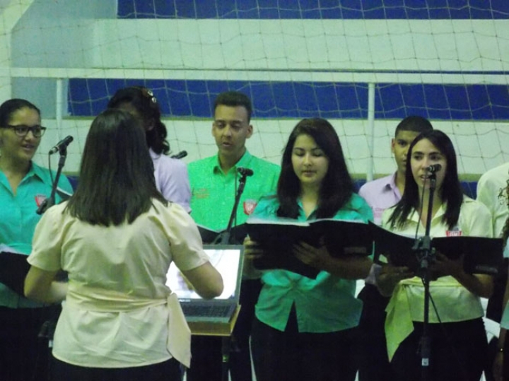 Nos momentos finais do evento, foi apresentada pelos formandos a música “Pescador de Ilusões” da banda O Rappa.