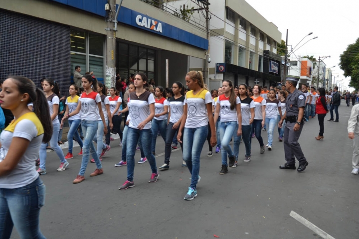 A Guarda Mirim, que faz parte das entidades que defilam todo ano, participou com grande destaque sob os olhares atentos dos espectadores munícipes e visitantes da cidade que compareceram no Jardim Público.