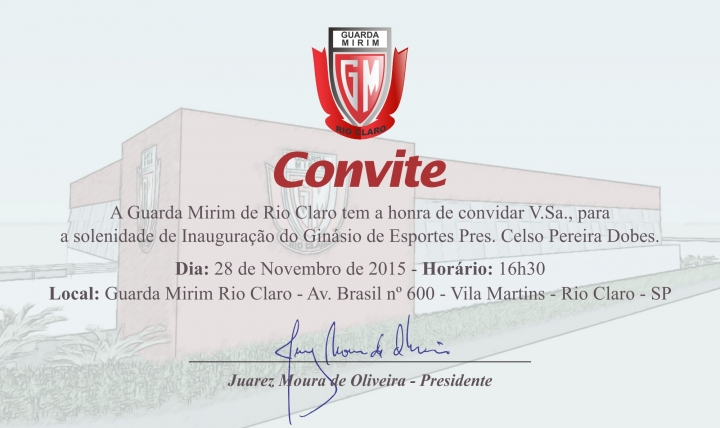 A Guarda Mirim de Rio Claro convida a todos para a solenidade de Inauguração do Ginásio de Esportes Pres. Celso Pereira Dobes.