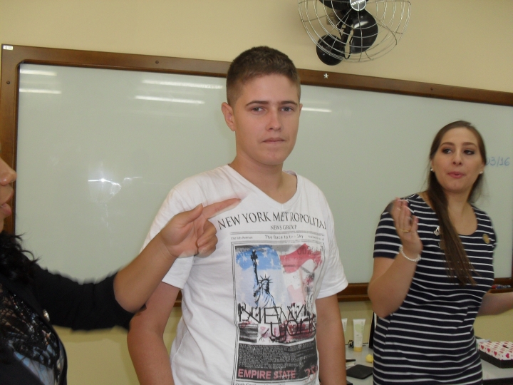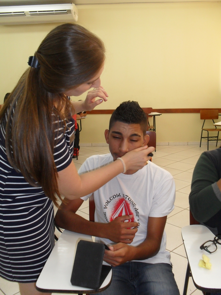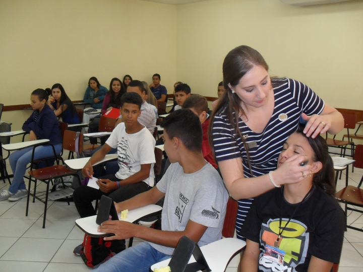 Por fim houve uma demonstração de maquiagem para as meninas e cuidados com a pele masculina.