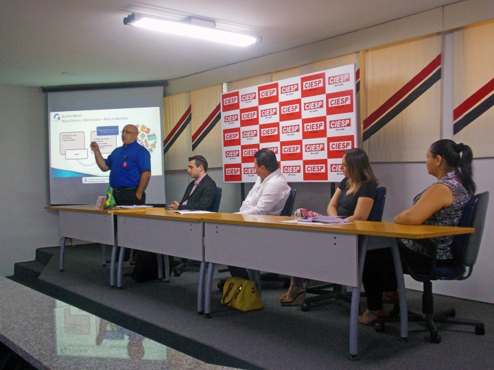 Durante a apresentação o Sr. Rinaldo Baptista apresentou as novas regras do ministério do trabalho para contratação dos aprendizes, em especial os novos horários e a duração do contrato.