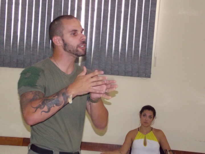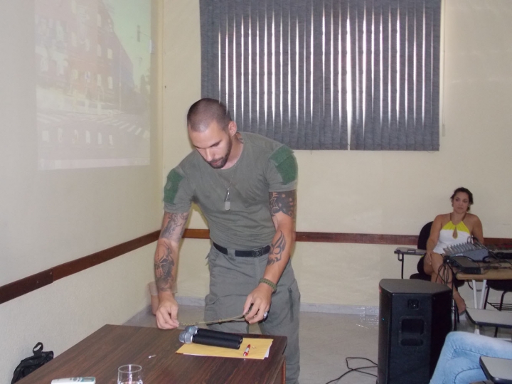 Durante a palestra Rodrigo apresentou diversas formas de defesa pessoal, mas sempre lembrando a importância de estar preparado para isso.