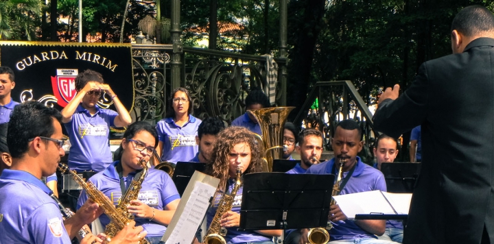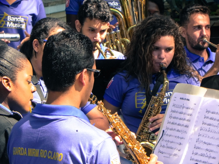 No último sábado (22), foi realizado nas imediações do Coreto Municipal - localizado na Praça Central de Rio Claro - a primeira apresentação da Banda Musical da Guarda Mirim, sob regência do maestro Jesse Eduardo Francisco.