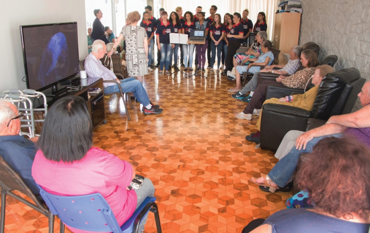 No último sábado (12), o Coral Encanto Jovem da Guarda Mirim se apresentou na Casa de Repouso Alvorada em comemoração às festividades do Dia dos Pais.