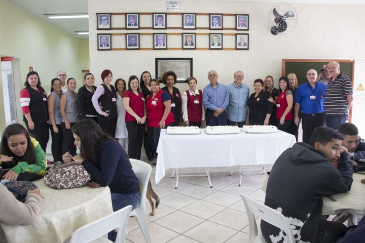 Os diretores aproveitaram a ocasião e contaram um pouco mais sobre a história da instituição para os aprendizes e logo após todos desfrutaram de um delicioso bolo.