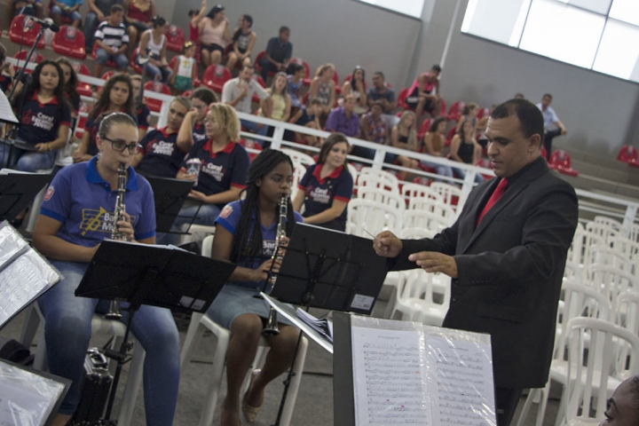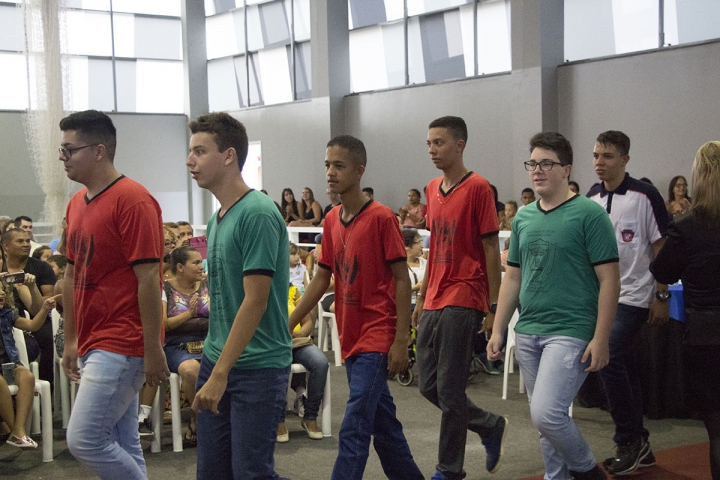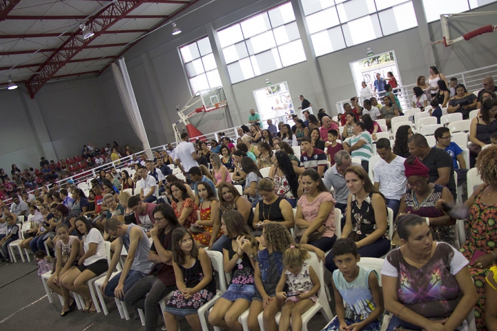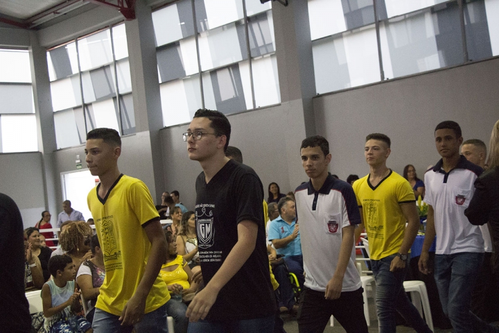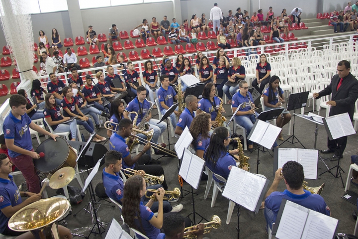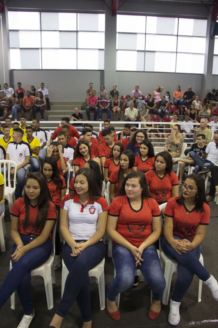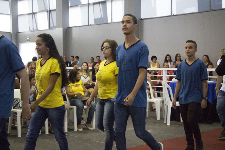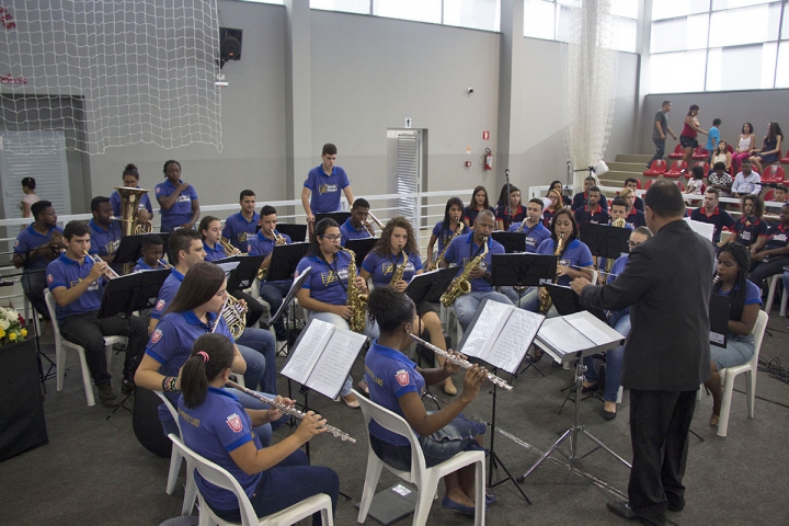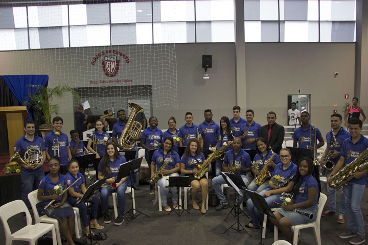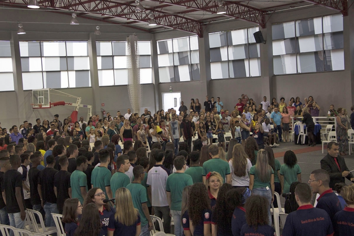 Iniciando a cerimônia, o Gerente Administrativo Sr. Rinaldo Baptista, apresentou ao público o Coral “Encanto Jovem” sob a regência da Maestrina e professora GrazieleTinós e a Banda Musical sob a regência do Maestro Jesse Eduardo Francisco.