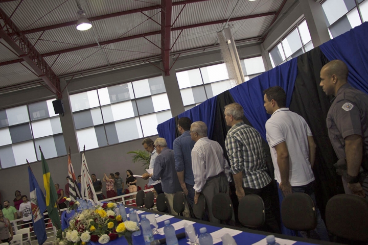 Após uma breve explicação sobre a atuação da Guarda Mirim, iniciou-se a composição da mesa do Cerimonial, convidando Diretores e autoridades presentes.