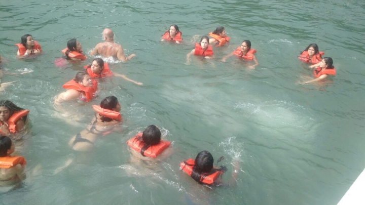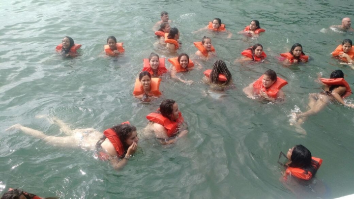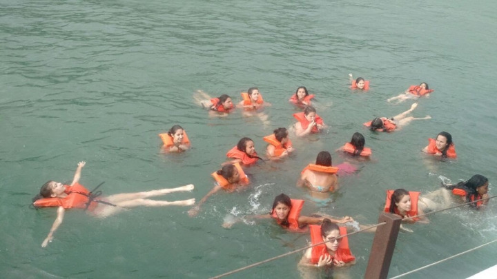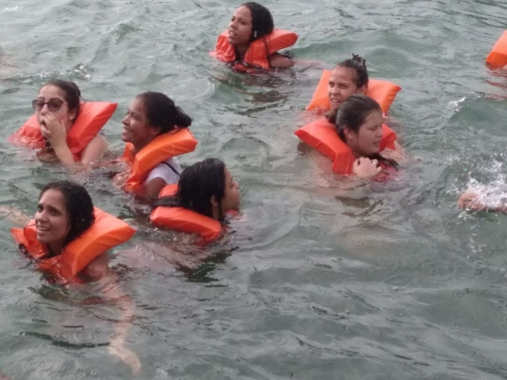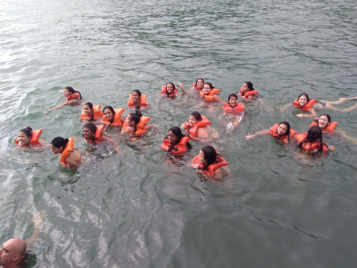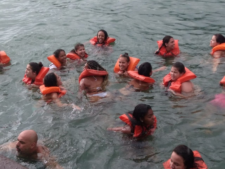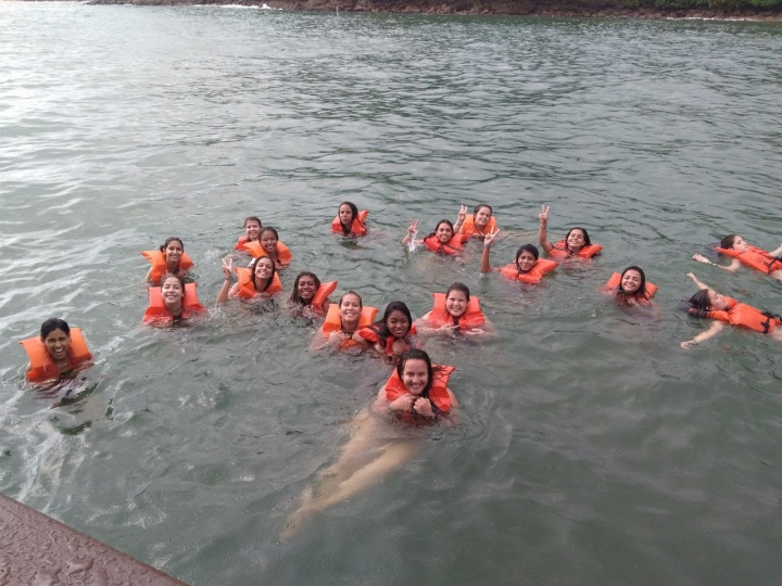 O destaque da viagem foi o passeio de escuna onde as adolescentes puderam mergulhar em alto mar (tudo é claro, com equipamentos adequados e seguindo as normas para garantir a segurança de todos).