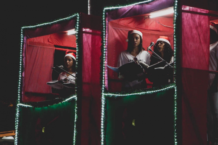 Junto à toda decoração, a Casa do Papai Noel, Casa de Gelo, presépio com imagens de 1,30 metro, trenós e uma diversidade de árvores, a apresentação ficará guardada na memória de todos que compareceram naquela noite.
