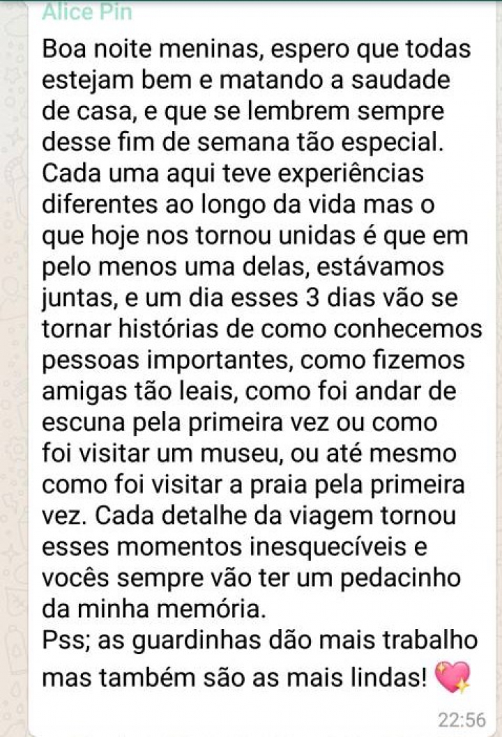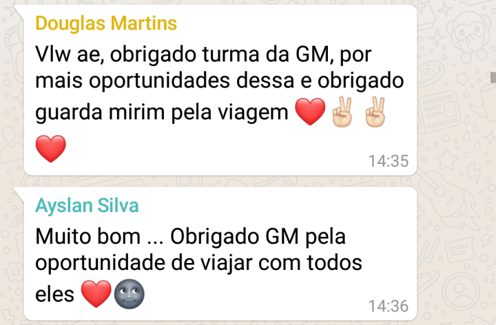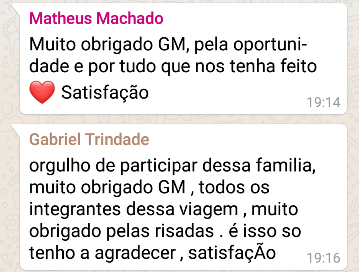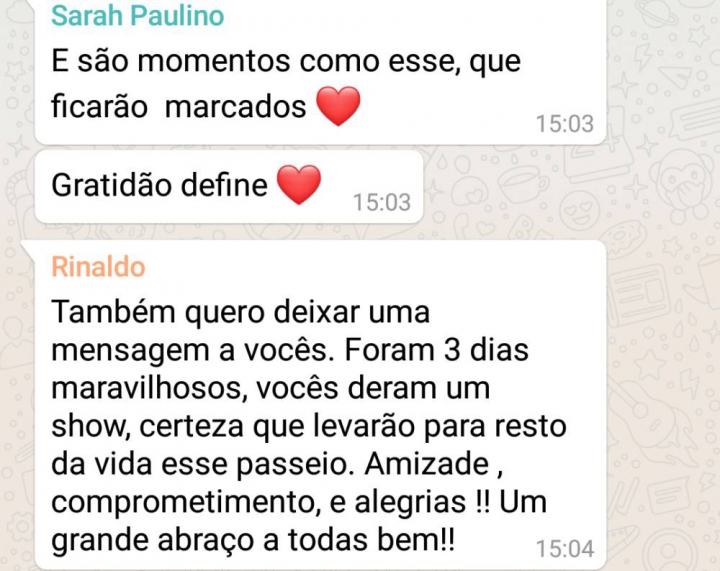 Compartilhamos aqui algumas mensagens dos adolescentes participantes com suas experiências sobre a viagem.