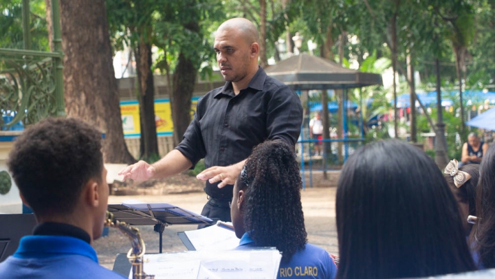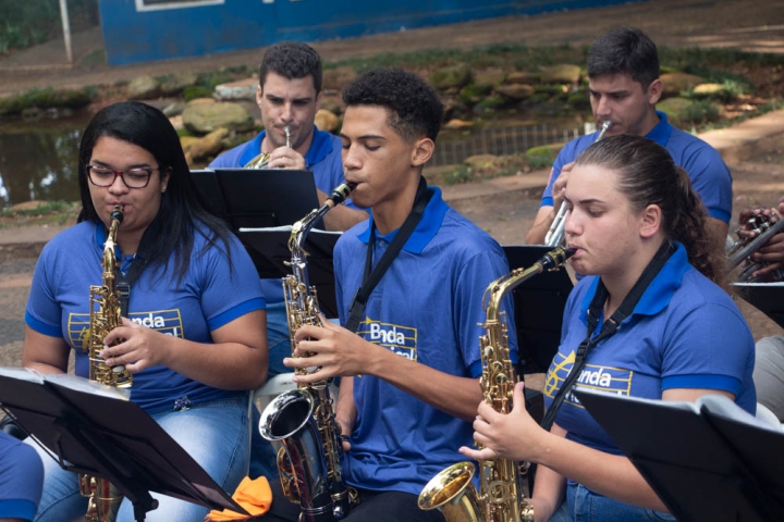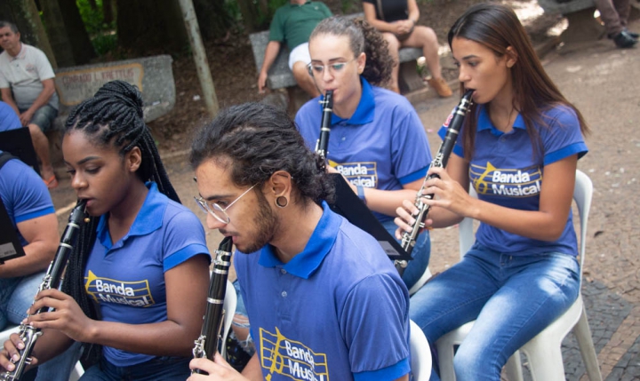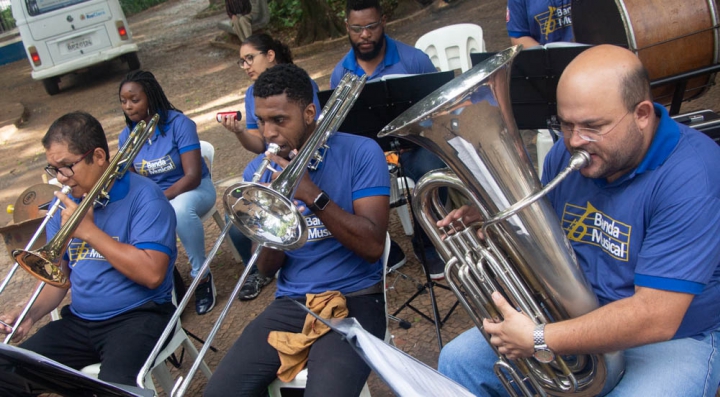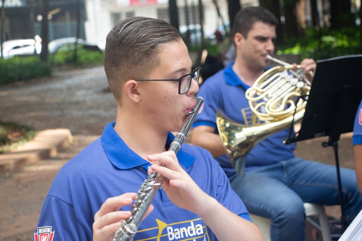 Por volta das 10h, os instrumentistas conduzidos pelo Maestro Jessé Francisco, animaram a manhã do Jardim Público de Rio Claro em um repertório repleto de músicas populares nacionais e internacionais.