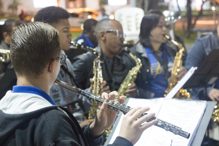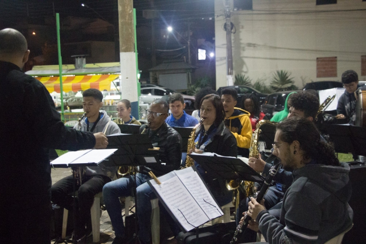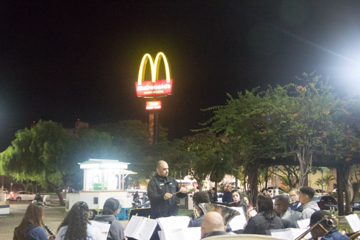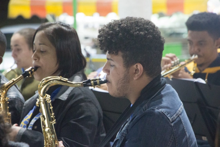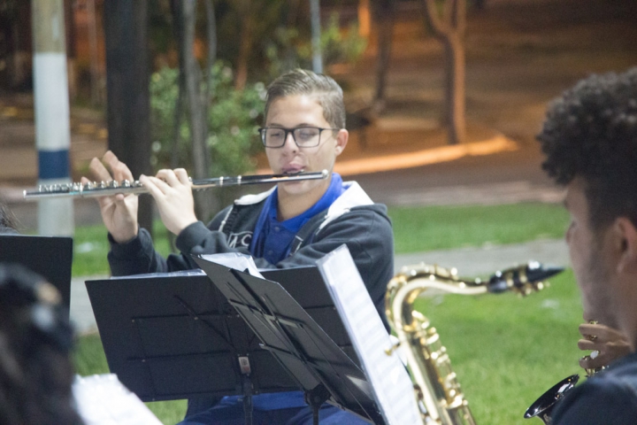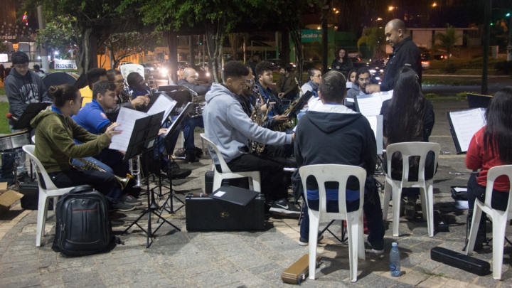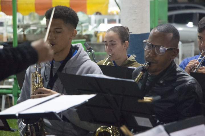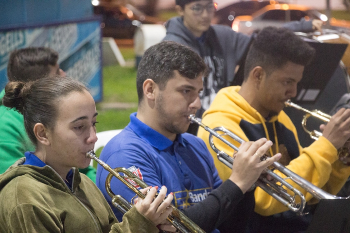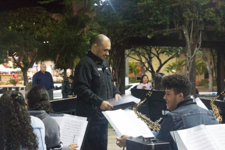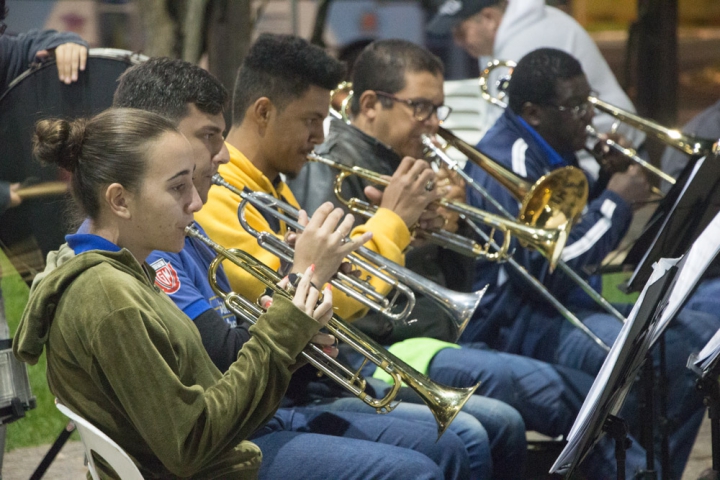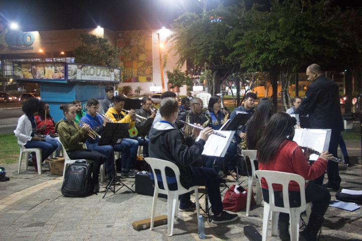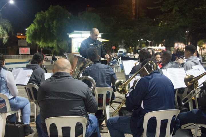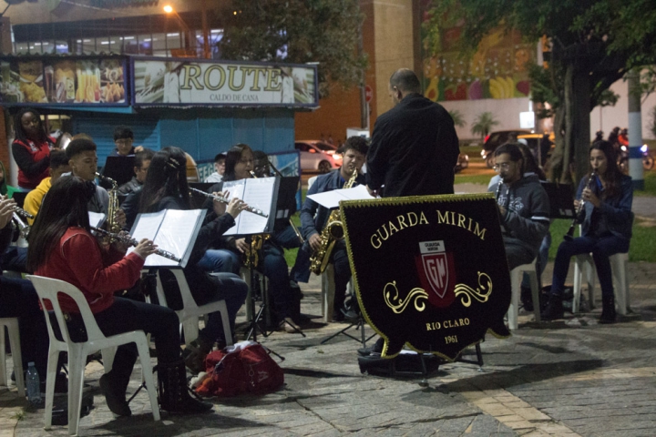 Os músicos conduzidos pelo Maestro Jessé Francisco, animaram a noite da praça em Rio Claro com um repertório repleto de músicas populares nacionais e internacionais como grandes sucessos de artistas como Pharrell Williams, Coldplay e Deep Purple.