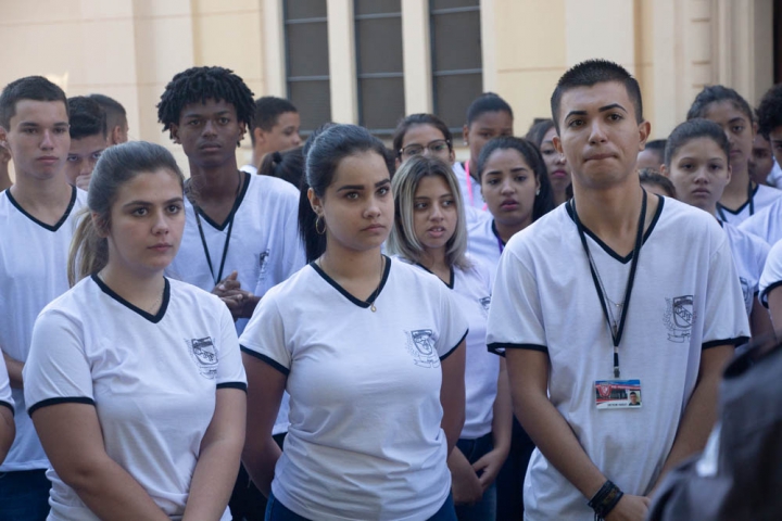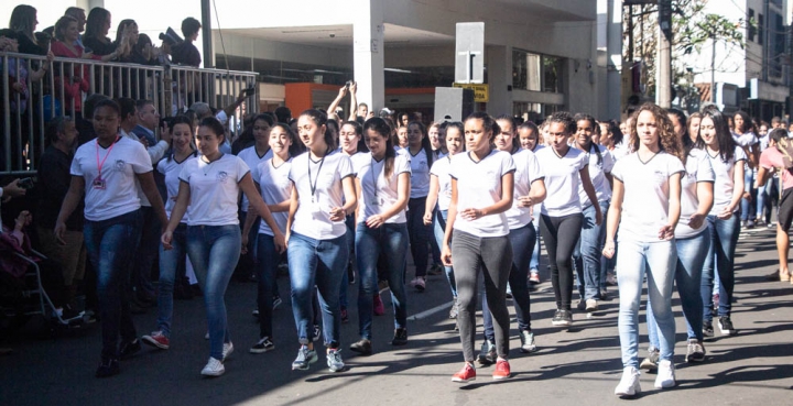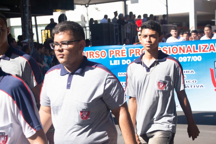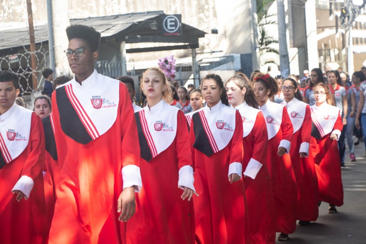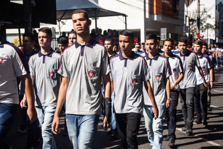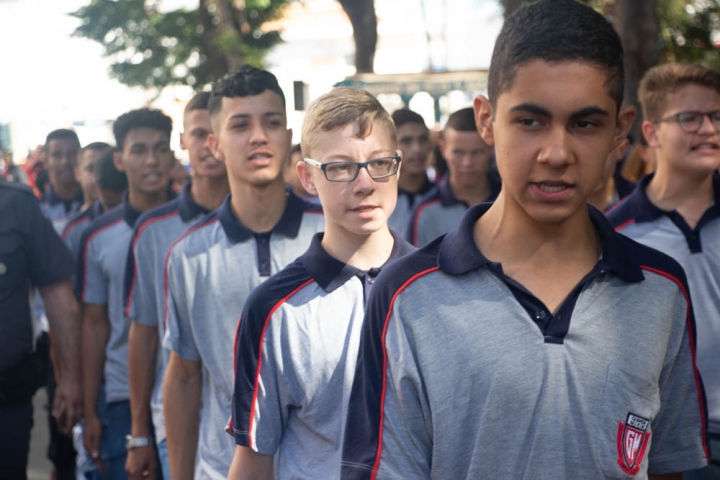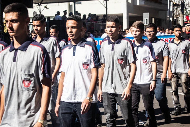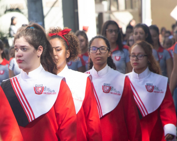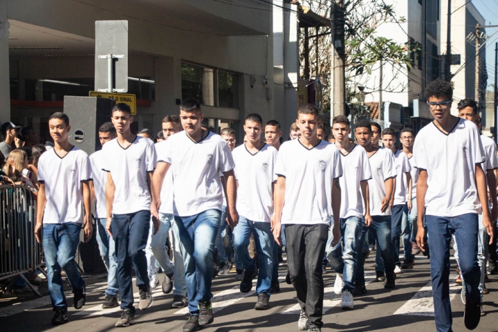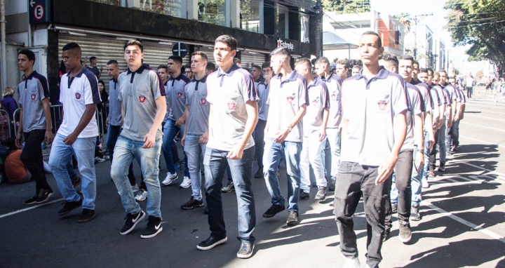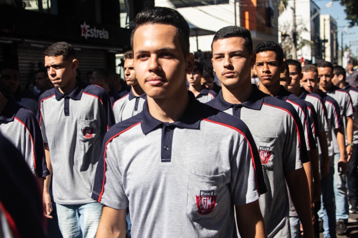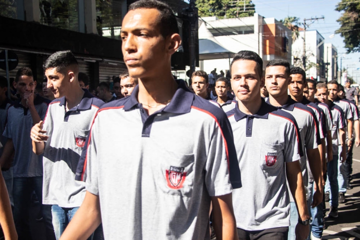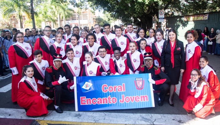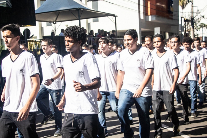 Os jovens foram divididos em alas, e cada uma delas tinha uma faixa descrevendo as competências da instituição e emocionou os que ali acompanhavam, seja com o impacto musical da fanfarra da Banda Musical e Coral Encanto Jovem, como também com os gritos de guerra dos adolescentes.