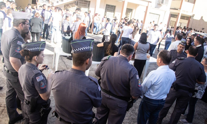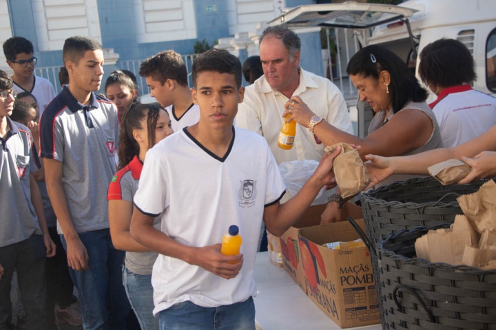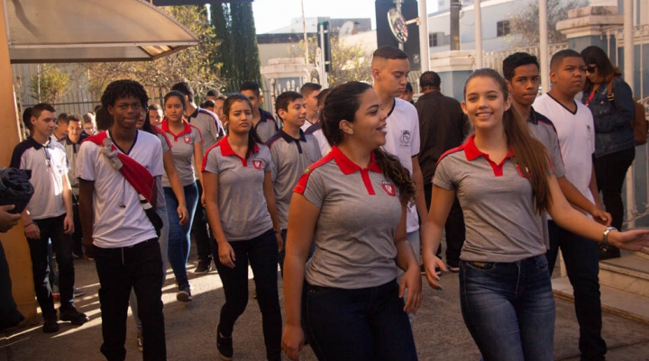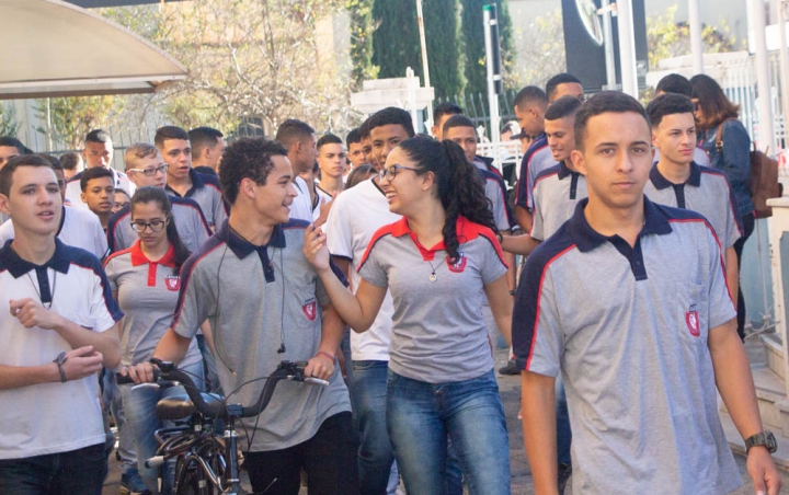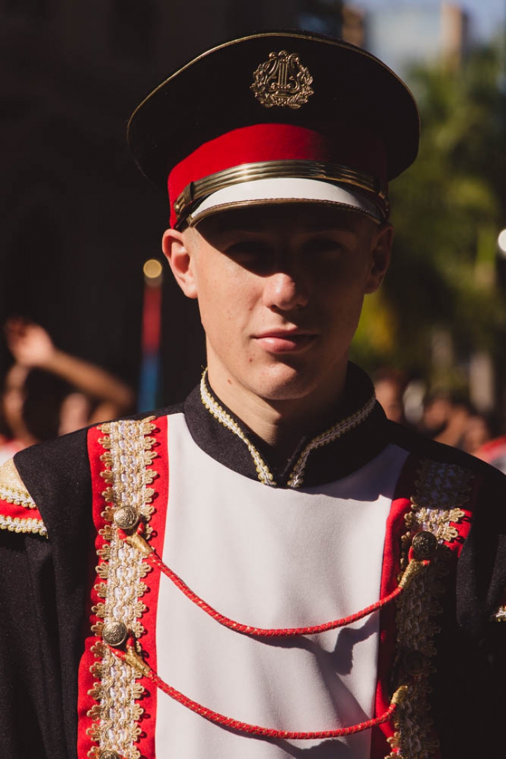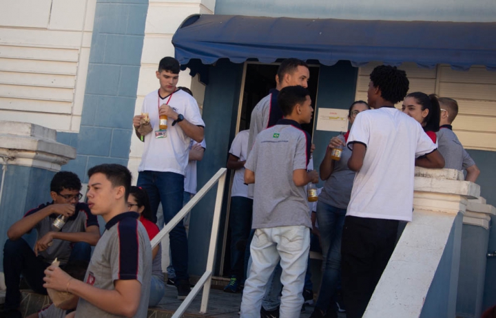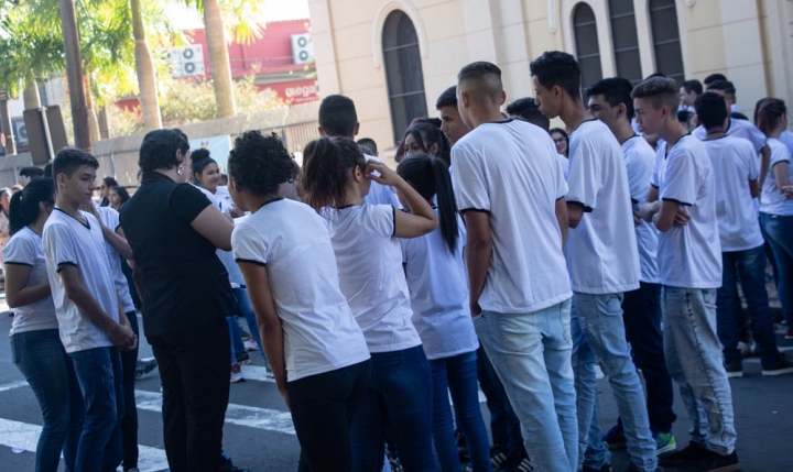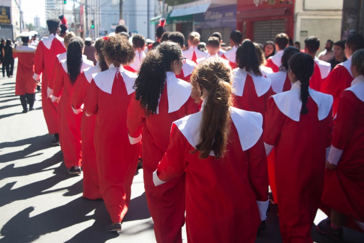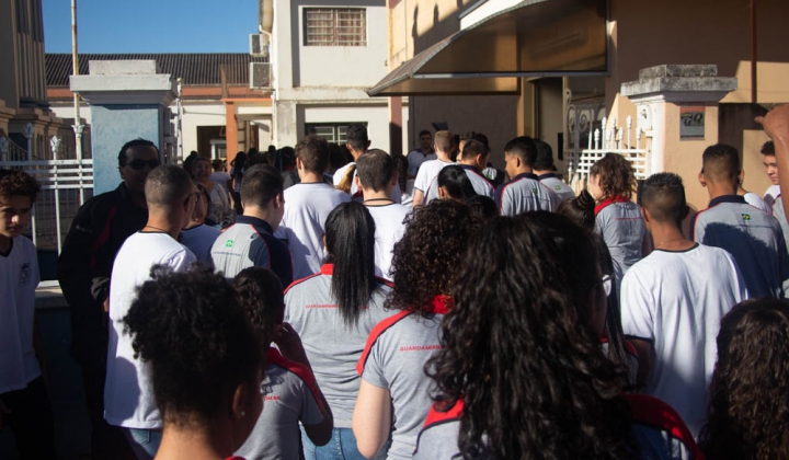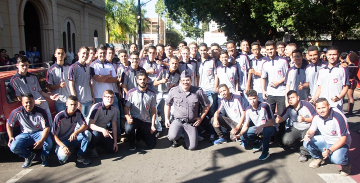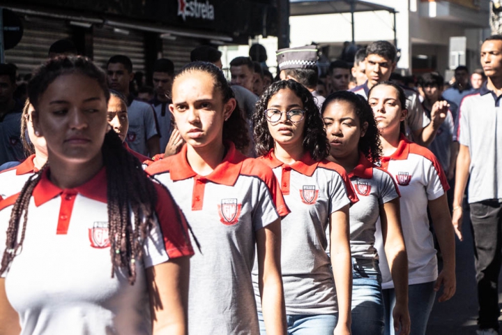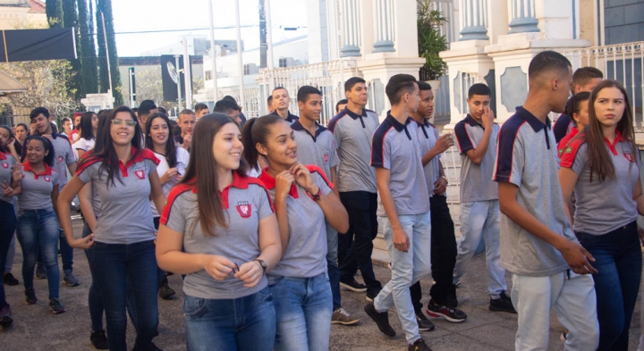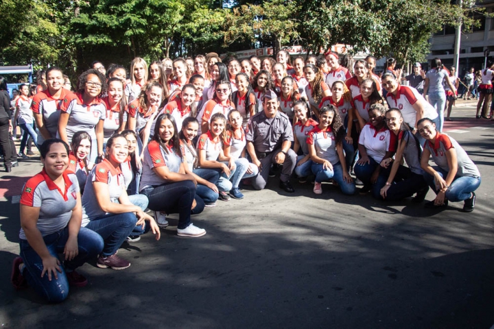 Os jovens foram divididos em alas, e cada uma delas tinha uma faixa descrevendo as competências da instituição e emocionou os que ali acompanhavam, seja com o impacto musical da fanfarra da Banda Musical e Coral Encanto Jovem, como também com os gritos de guerra dos adolescentes.
