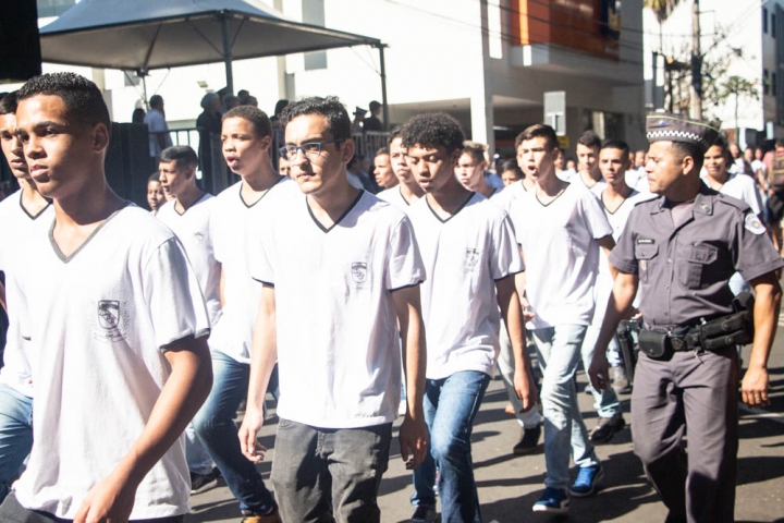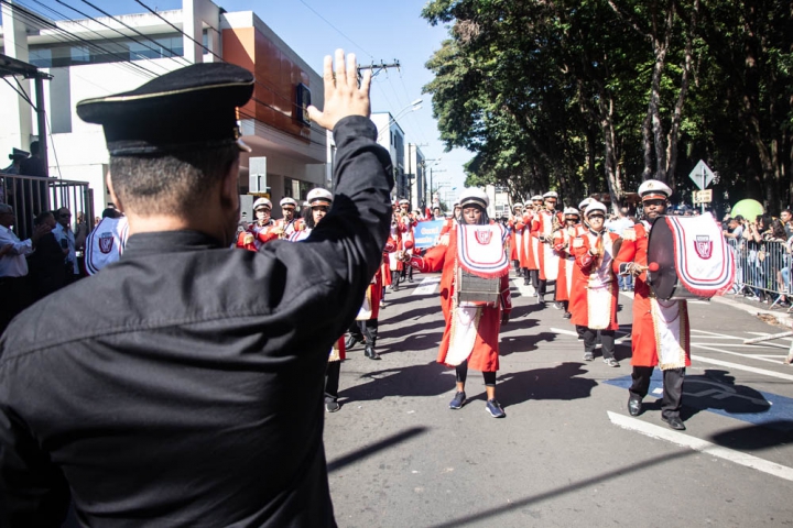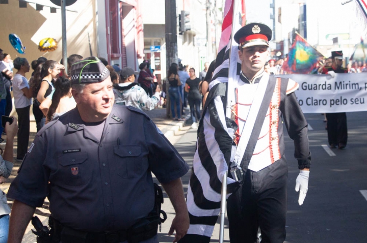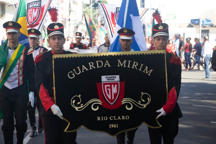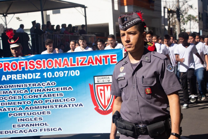 Programado para iniciar às 9h da manhã, a Guarda Mirim tradicionalmente fez parte do quadro de entidades que se apresentaram no desfile, comandados pelo Trigésimo Sétimo Batalhão de Polícia Militar do Interior, proporcionando uma passagem harmoniosa e cadenciada de movimentos ao redor do Jardim Público Central.