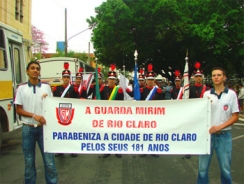 Na próxima quarta-feira dia 24 de junho, às 9h  tem início o desfile cívico em comemoração ao aniversário de 182 anos de fundação de Rio Claro com abertura da Fanfarra do Tiro de Guerra, hasteamento dos Pavilhões e Hinos. A Guarda Mirim tradicionalmente fará parte do quadro de entidades que irão se apresentar no desfile.
