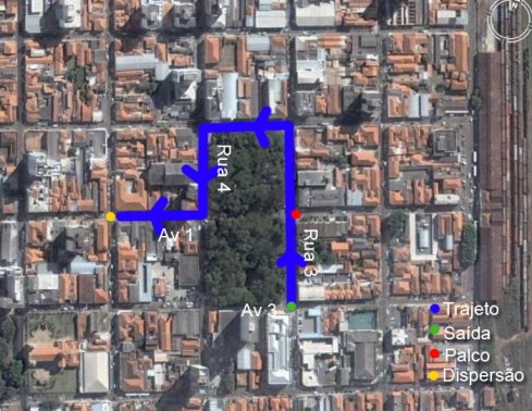 O trajeto do desfile será ao redor do Jardim Público Central, e terá início na Rua três com a Avenida três.