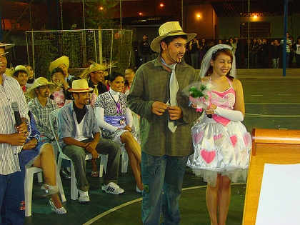 A quadrilha foi o ponto alto da festa, com direito a padre, noiva, noivo, os pais das noivas e convidados. O padre iniciou o casório e quase que os noivos fugiram se não fosse os pais das noivas já correrem ao encalço dos espertinhos que não tiveram como escapar, o padre entregou as alianças aos recém casados e a dança começou na quadra. Cerca de 25 pares compuseram a quadrilha.