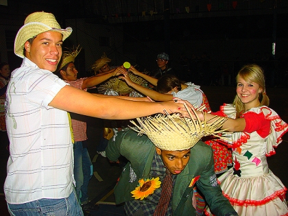 Sábado, dia 4 de julho foi dia de Festa Julina na Guarda Mirim de Rio Claro. O evento, que já é tradição na instituição teve início às 19h. Barraquinhas de espetinho, cachorro quente, doces, refrigerante e vinho quente fizeram à alegria de todos os presentes, guardinhas, cpps, colaboradores, diretoria e convidados. A dupla João Vitor e Alessandro animou a festa com muita música sertaneja e bailão que chamou a galera para a dança, vários eram os pares dançantes. Teve ainda um pessoal que amargou alguns minutos de festa dentro da cadeia que era bem guardada pelo xerife e alguns peões que se arriscaram no touro mecânico.