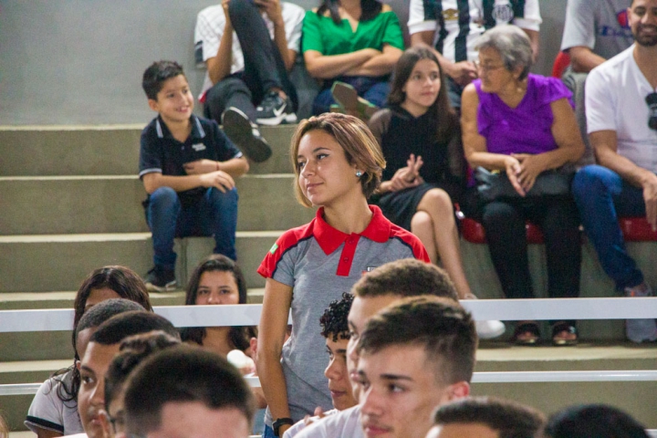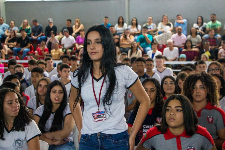 Logo após, a Orientadora Educacional Gisele Dias, fez uma breve explanação aos presentes do conteúdo do Curso, dando os parabéns as turmas denominadas: Eficiência, Planejamento, Sinergia, Engajamento e Excelência pela etapa concluída com êxito.