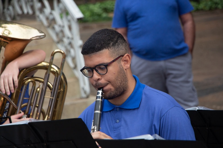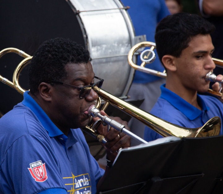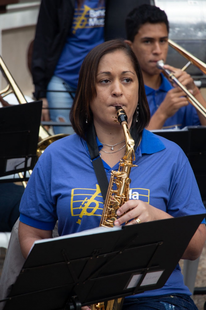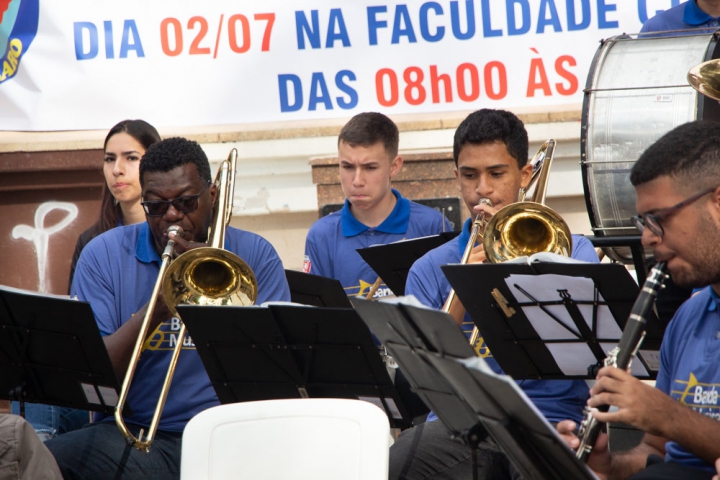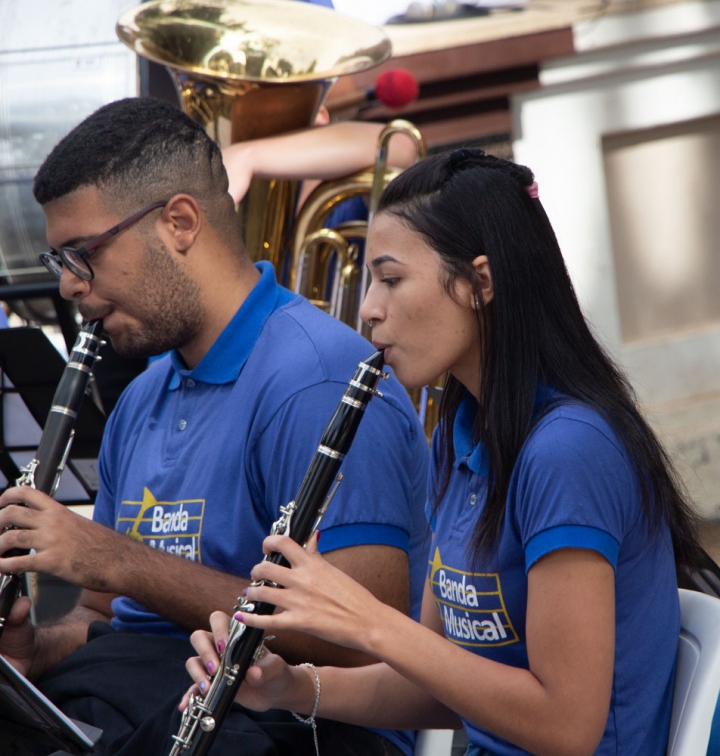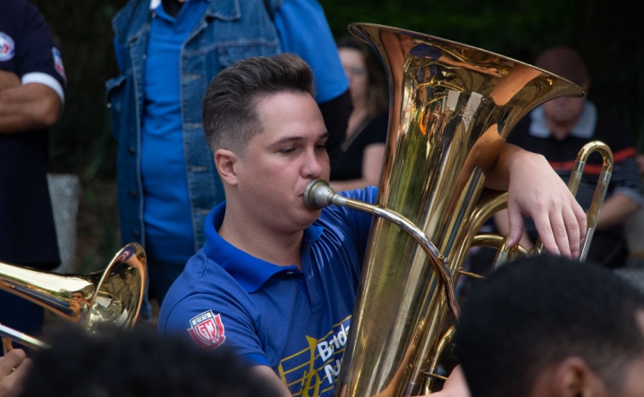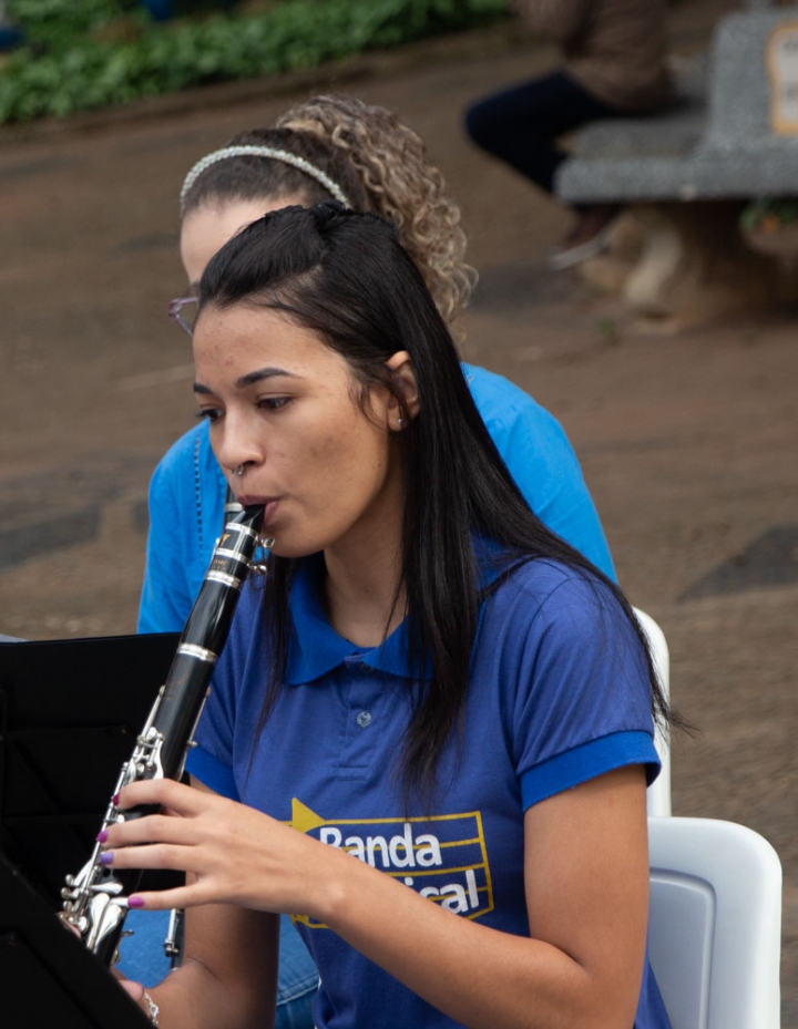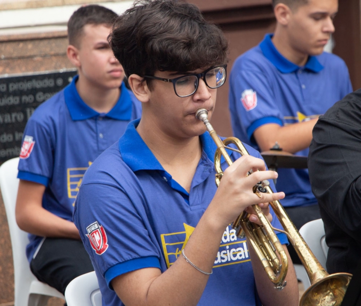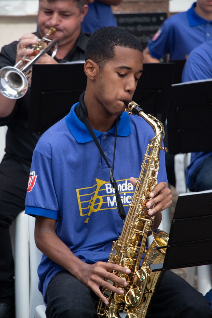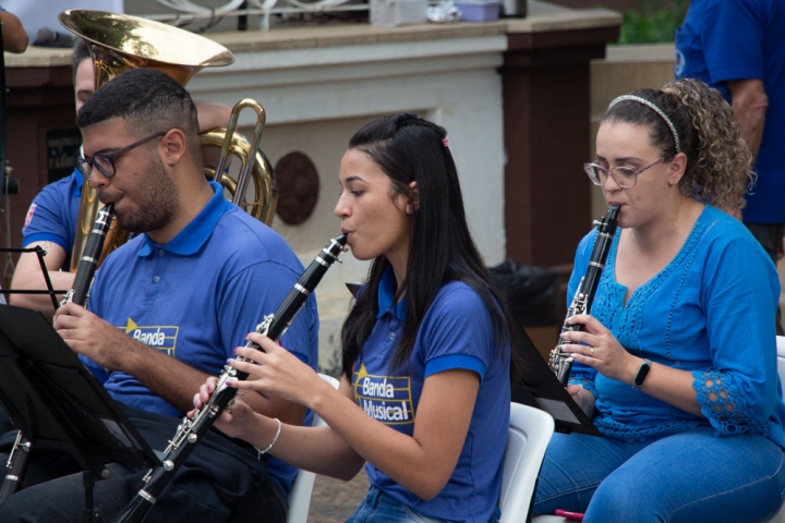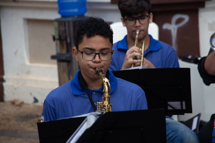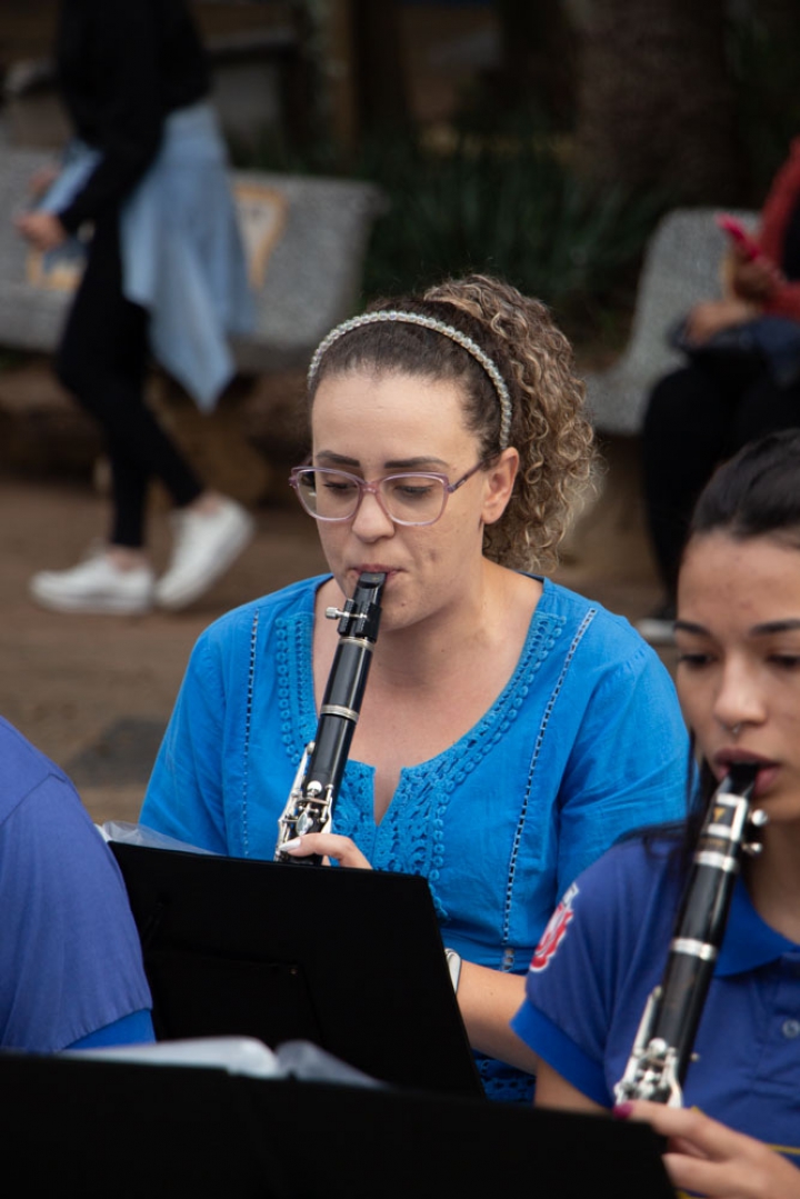 O regente Jessé Francisco conduziu a banda com maestria, demonstrando seu talento em extrair o melhor desempenho de cada integrante. Com gestos precisos e expressivos, ele coordenou harmonicamente os instrumentos, resultando em uma apresentação impecável e vibrante.