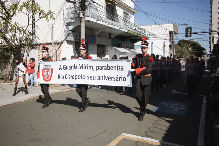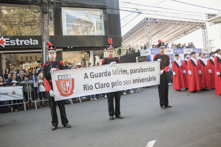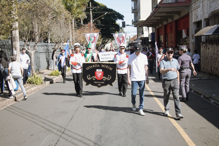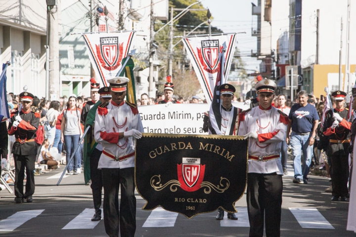 No dia em que o município completa 196 anos, a Guarda Mirim de Rio Claro marcou presença de forma grandiosa no desfile cívico realizado no entorno do Jardim Público, localizado no centro da cidade. Logo de início, às 9:00 horas, a Banda e o Coral realizaram a abertura do evento com o Hasteamento das Bandeiras, em seguida acompanhados pelos Porta Bandeiras se retiraram em direção ao demais aprendizes para depois finalizarem ao desfile.