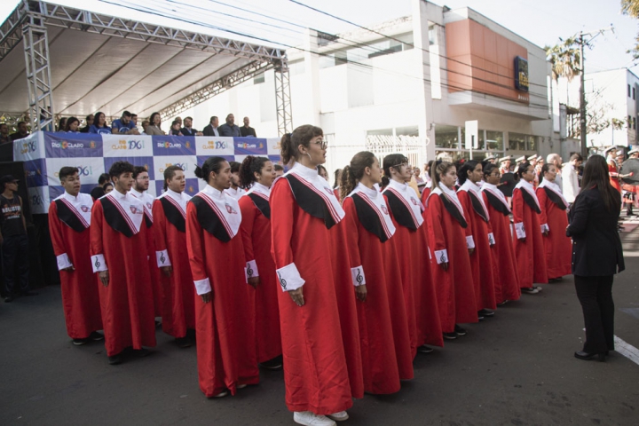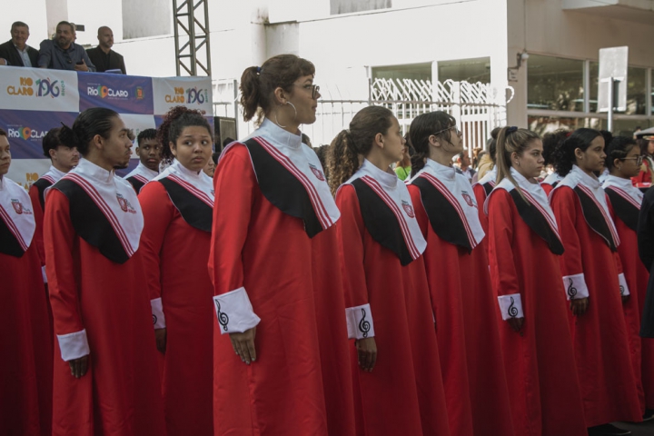 Ao final do desfile, a Guarda Mirim, acompanhada pelo Coral e pela Banda, presenteou a cidade com a execução do Hino de Rio Claro, reforçando o amor e a gratidão pela terra natal. E, em um gesto de alegria e comemoração, todos entoaram a tradicional canção "Parabéns para você", celebrando não apenas o aniversário da cidade, mas também a união e o espírito festivo da comunidade rio-clarense.
