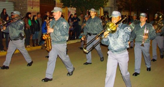 A banda da Guarda Mirim foi regida pelo Maestro Daniel e o grupo era direcionado por Rinaldo Baptista, administrador da instituição.
