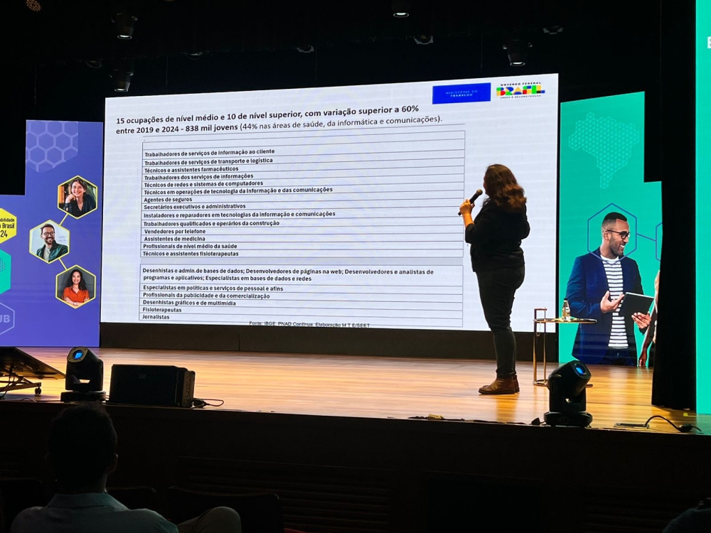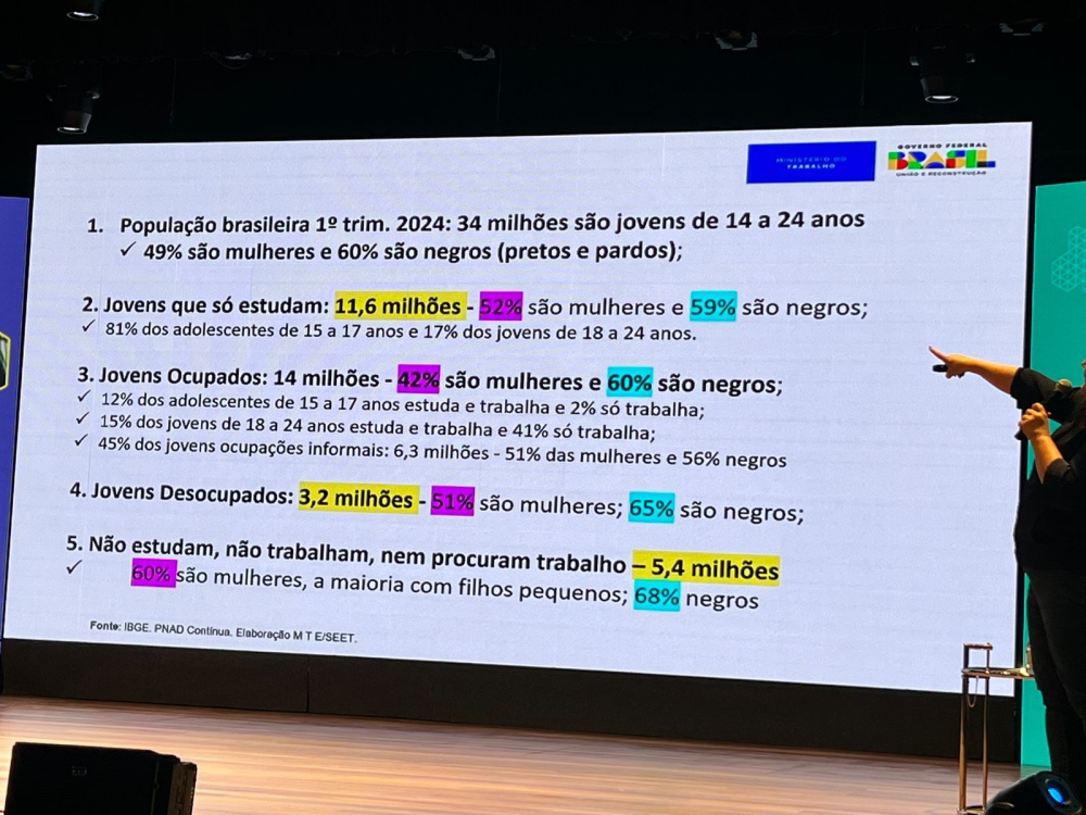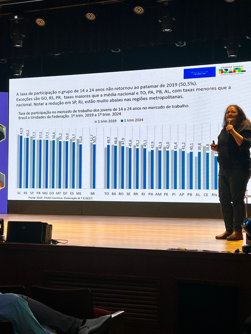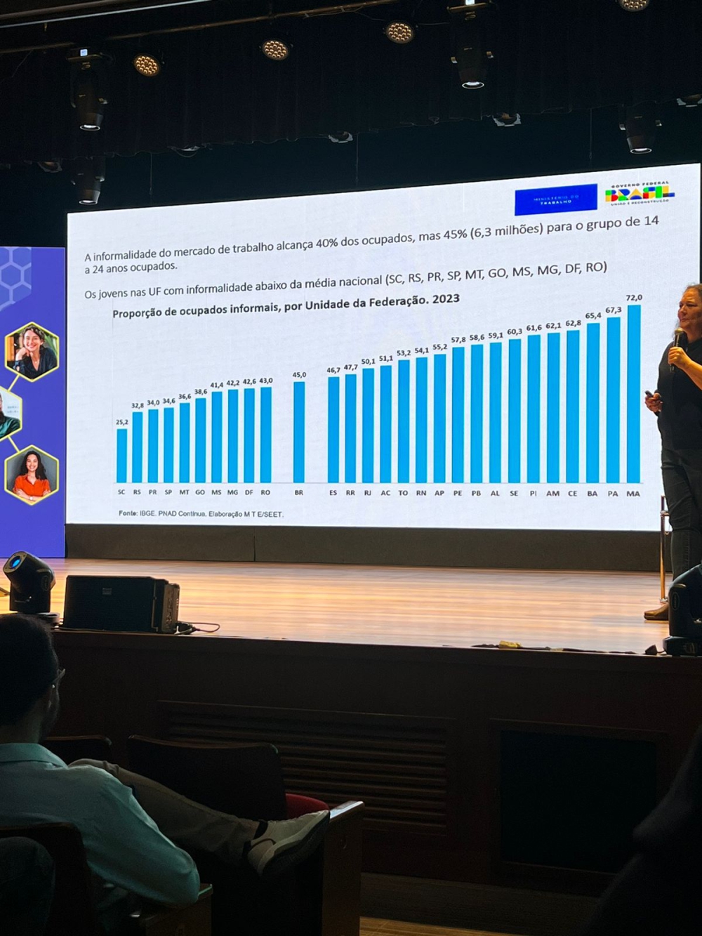 Foi apresentada uma pesquisa inédita feita pela Subsecretaria de Estatísticas e Estudos do Trabalho, do Ministério do Trabalho e Emprego (MTE), entre 2011 e 2024, onde dobrou o número de aprendizes no Brasil. Atualmente, são 602 mil. Já os estagiários eram 642 mil em 2023 e hoje são 877 mil, um crescimento de 37%. Mais da metade (51%) atua em empresas privadas, mas há elevada parcela no Setor Público (40%), principalmente na Administração Pública (30%) e Justiça (7%).